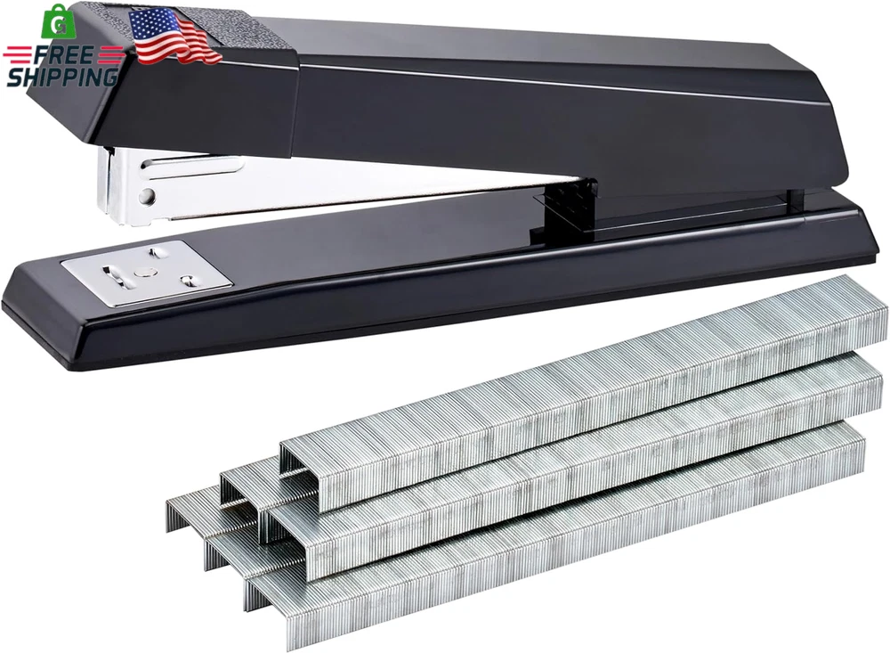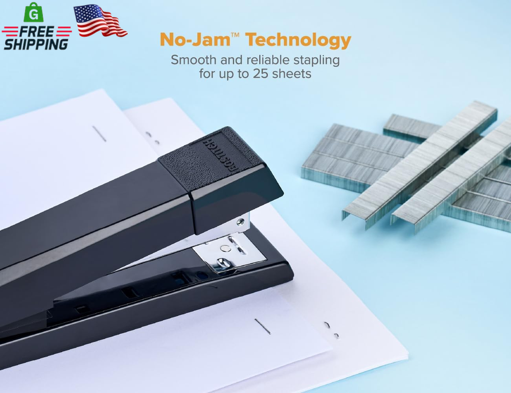 Stapler with 1000 Staples, Office Stapler, 25 Sheet Capacity, Non-Slip, Black