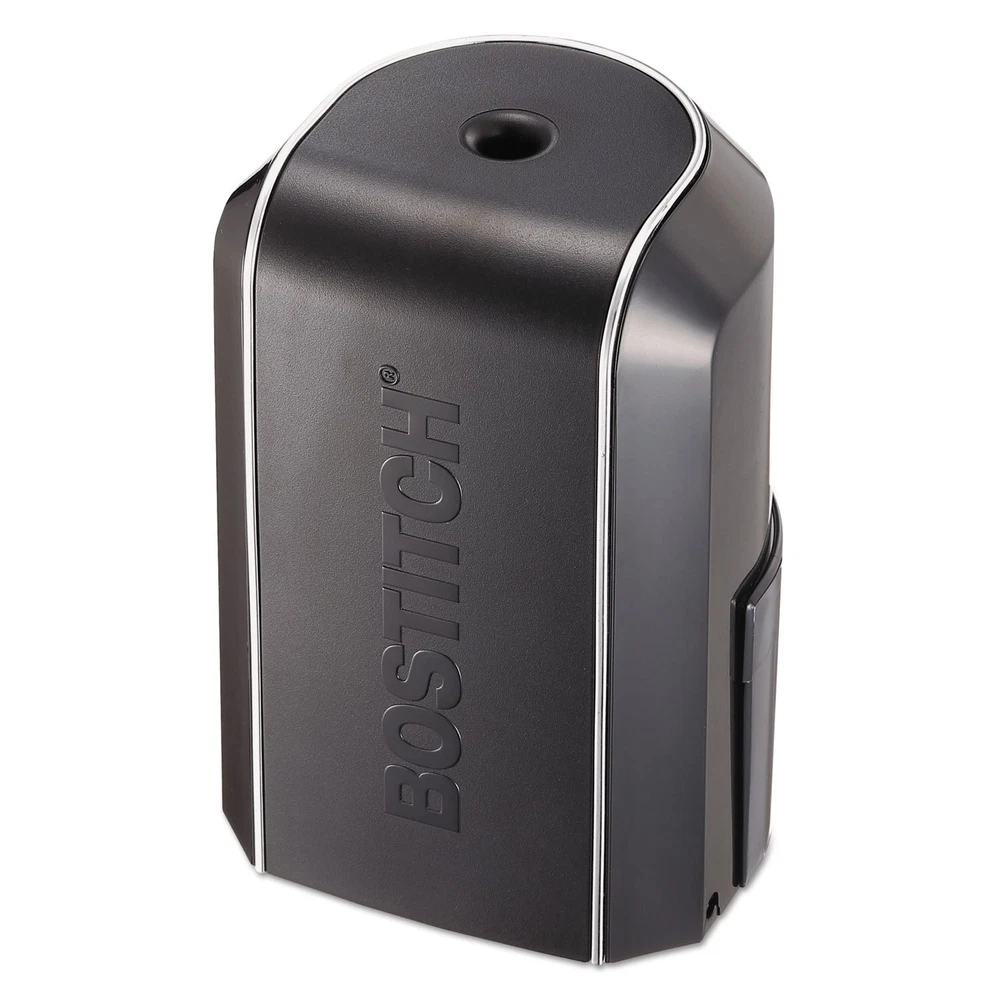 An attractive vertical design and a powerful, stall-free motor with thermal overload protection makes this sharpener the ultimate companion for any workspace. HHC cutter technology produces a sharp pencil point while extending your cutter life by 4X . It's also equipped with a Sharp Stop mechanism, which atomically shuts the motor off to prevent over sharpening. Not only is the unit's shaving receptacle a breeze to clean, but it also boasts a motor shutoff feature for safe cleaning when the tray is removed. Safety switch prevents operation when shavings tray is removed SharpStop automatically shuts motor off to prevent over sharpening Space-saver compact vertical design Powerful motor for stall-free operation under normal use Thermal overload protection for increased motor life