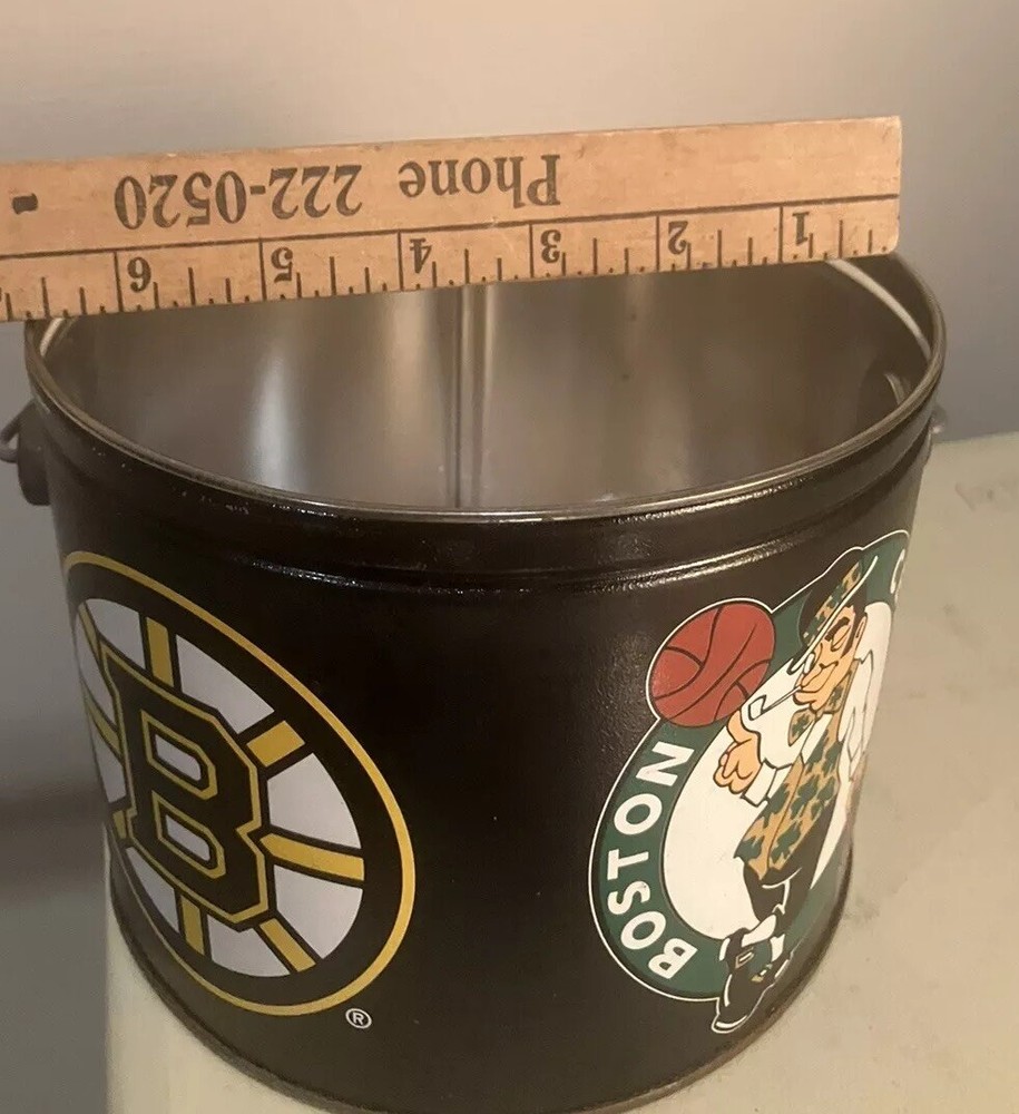 This collectible metal tin features the iconic Boston Bruins and Celtics logos, making it a must-have for any basketball fan. Measuring 61/2 inches in diameter and 51/2 inches in height, this tin is perfect for storing your favorite snacks or other small items. It's a great addition to any sports memorabilia collection and is sure to impress your fellow fans. The tin is made from high-quality materials and features a durable finish, ensuring that it will last for years to come. Whether you're a die-hard Boston Bruins fan or simply love basketball, this metal tin is a great way to show your support for your favorite team.