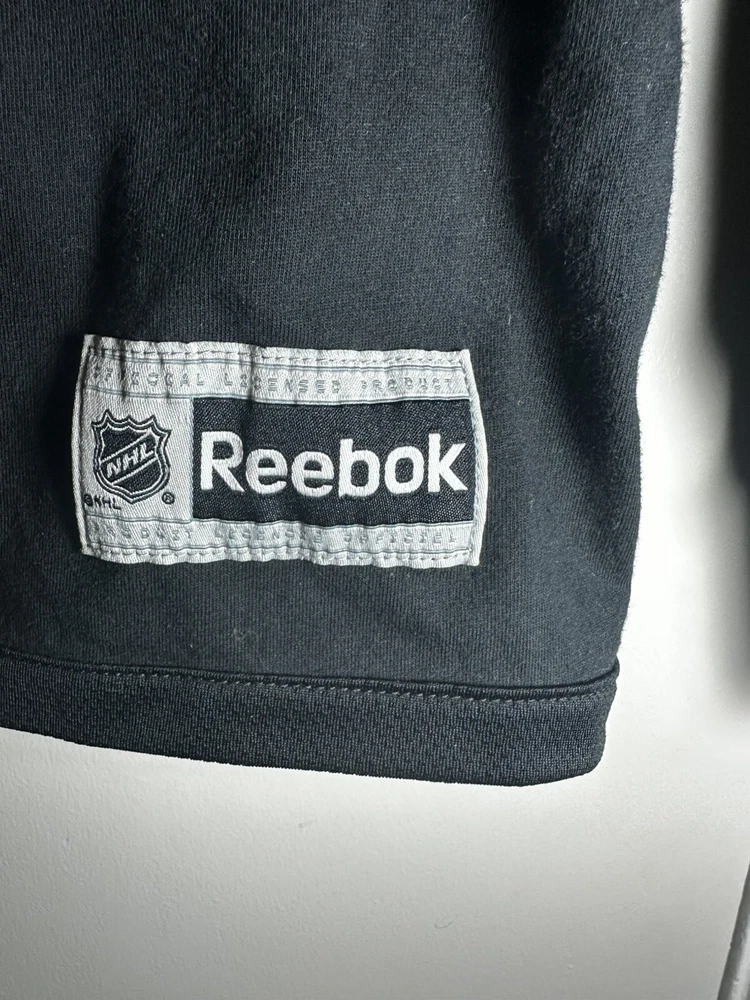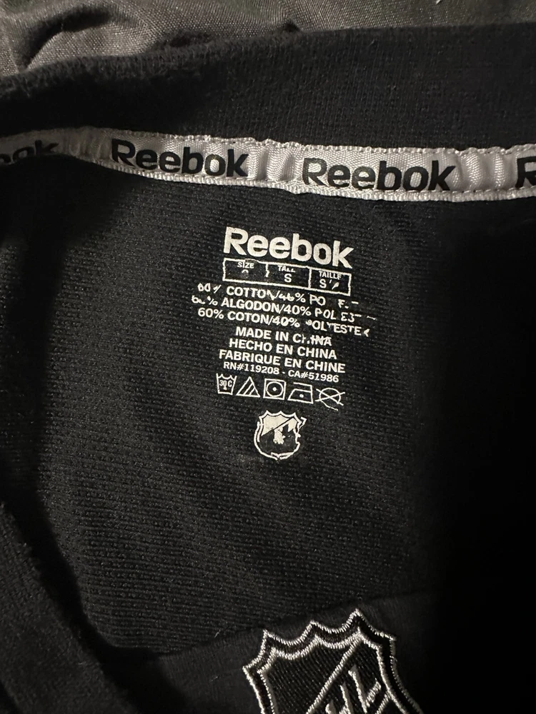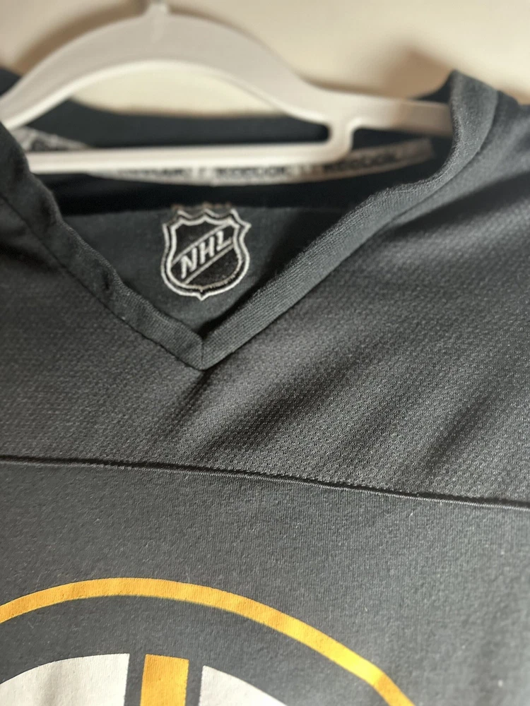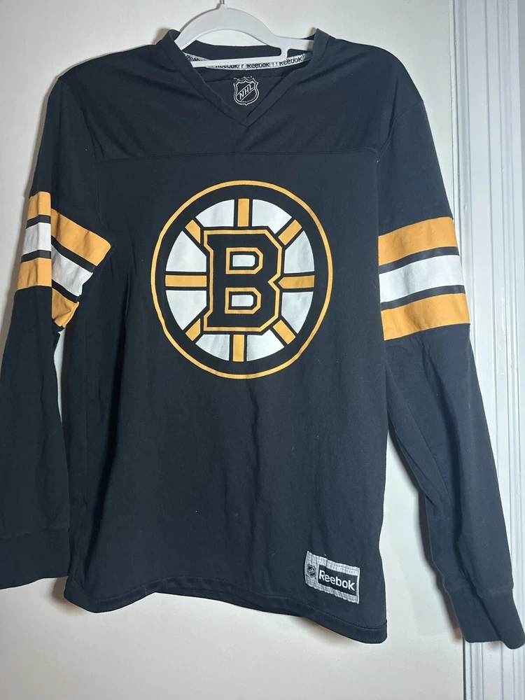 Boston Bruins Long Sleeve Shirt. Sz: Small. Black. Logo. Arm Band - yellow/black. NHL Hockey. Great condition. No Rips, stains or defects. Top or the shirt at shoulder is more of a traditional jersey fabric. The bottom of the shirt is traditional cotton tight knit. Please see measurements for sizing. 17” wide - pit to pit. Laying flat 28” long top to bottom - laying flat 24” sleeve - from shoulder cut