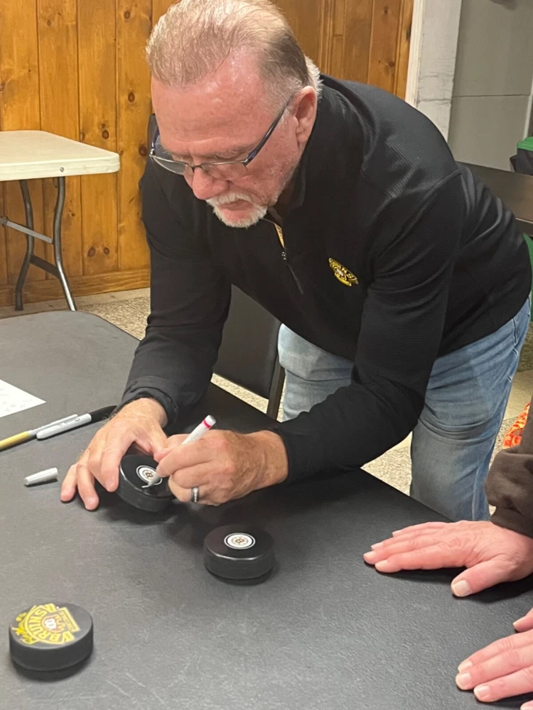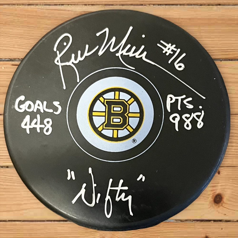 YOU ARE PURCHASING 1 Rick Middleton autographed photo puck. This puck was signed by Rick Middleton at my show in Massachusetts. Puck is inscribed points, goals, Nifty and assists...Shipping and handling $8.95 in the United States. C of A ships with item.