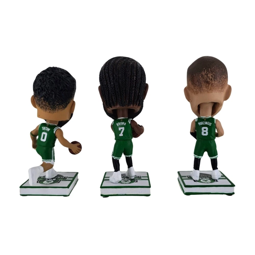 **BRAND NEW** LIMITED TIME ONLY - WHILE SUPPLIES LAST SPECIAL LIMITED QUANTITIES MADE Boston Celtics 2024 NBA Finals Champions Mini Bobbleheads 3-pack Set - Jayson Tatum - Jaylen Brown - Kristaps Porzingis 3-Pack Set of the Boston Celtics NBA Champions Brand new in unopened box Includes 1 Mini Bobblehead each of Jayson Tatum, Jaylen Brown, and Kristaps Porzingis Each Mini Bobblehead is about 4 inches in height Great Gift idea! These officially licensed, hand-painted bobble heads feature Jayson Tatum, Jaylen Brown, and Kristaps Porzingis. These Boston Celtics collectibles are made of heavy resin/ceramic type material. They Measure approximately 4 inches in height. This is the perfect gift for your favorite Celtic fan! Your item is automatically insured! HAVE FUN!