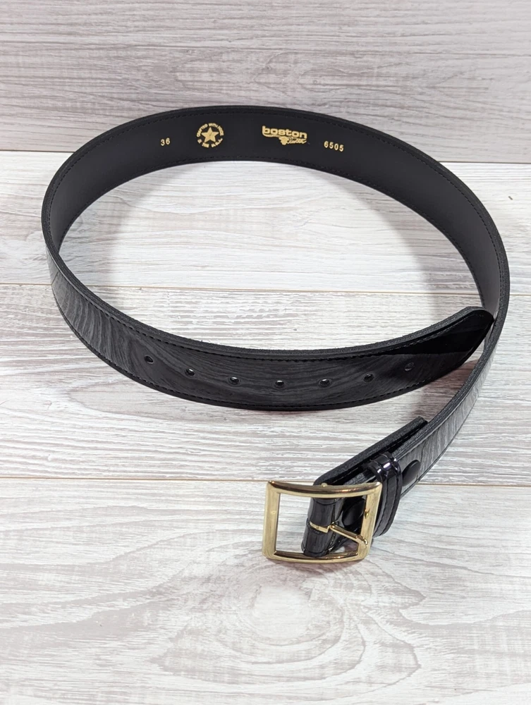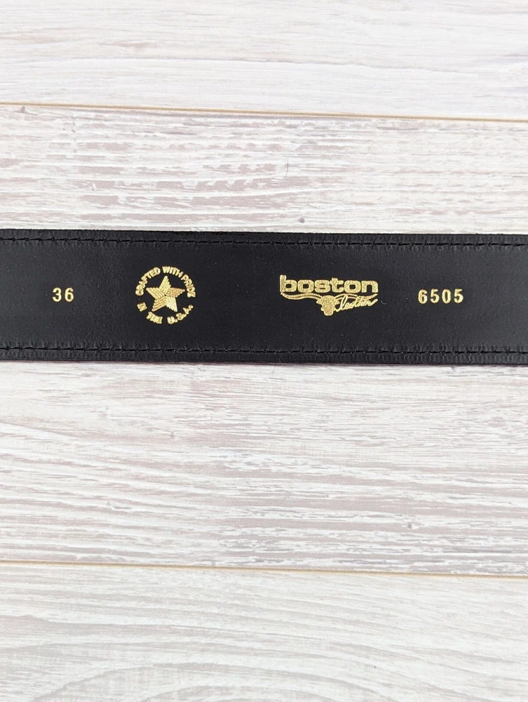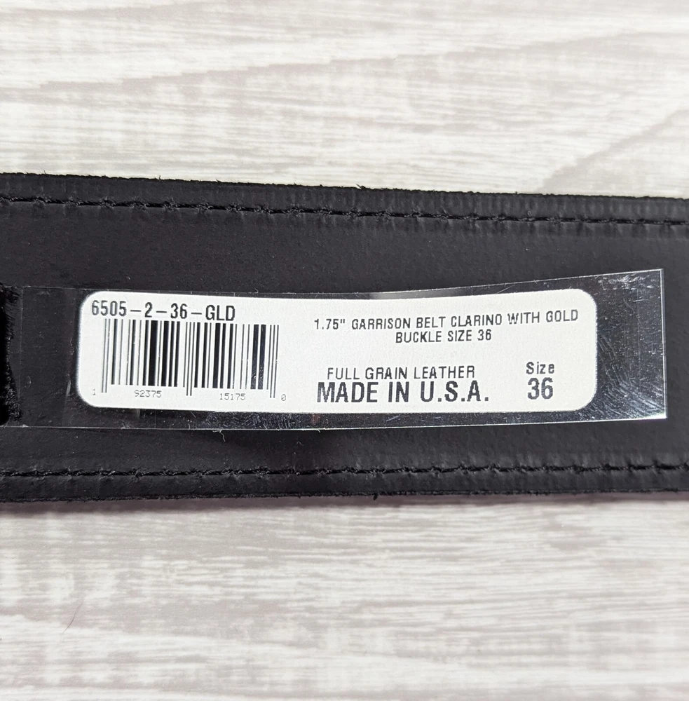 Boston Leather 1.75in. Garrison Leather Belt US Made Black Gold Buckle Size 36. Condition is new with tags. Smoke free environment. Shipping: Flat Rate Shipping. Ground Advantage (within 3 business days). I1