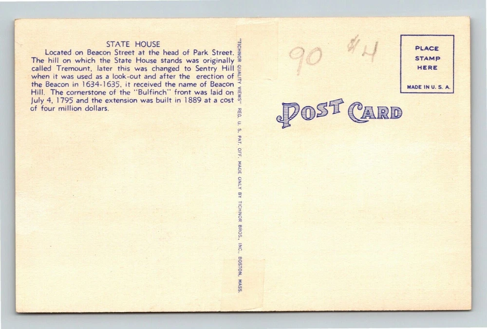 Era: Linen Subject: Cities & Towns Country: USA Postage Condition: Unposted Theme: Cities & Towns City: Boston Original/Licensed Reprint: Original Region: Massachusetts Unit of Sale: Single Unit Country/Region of Manufacture: United States Type: Printed (Lithograph)