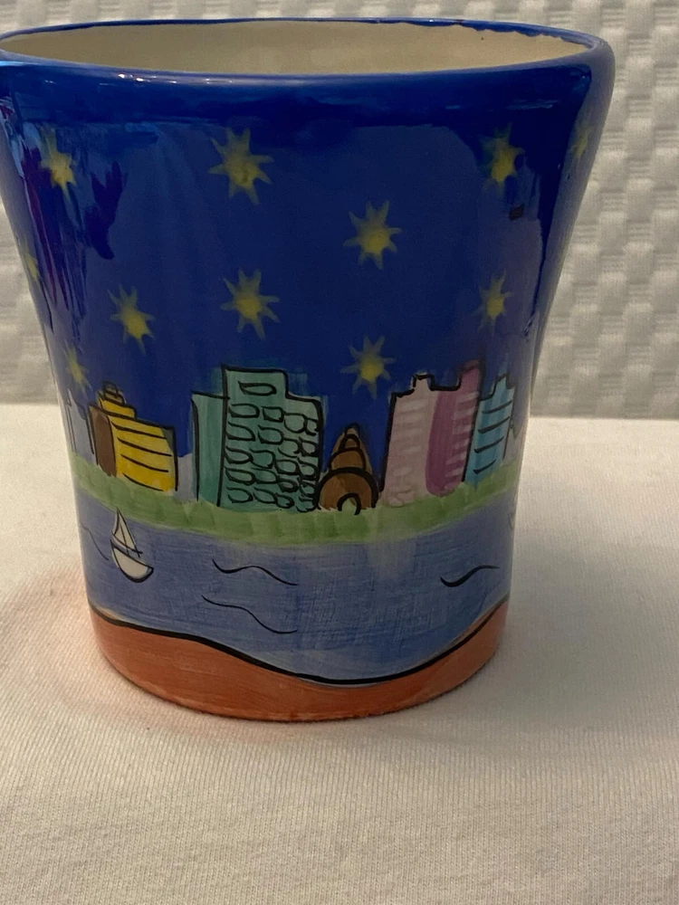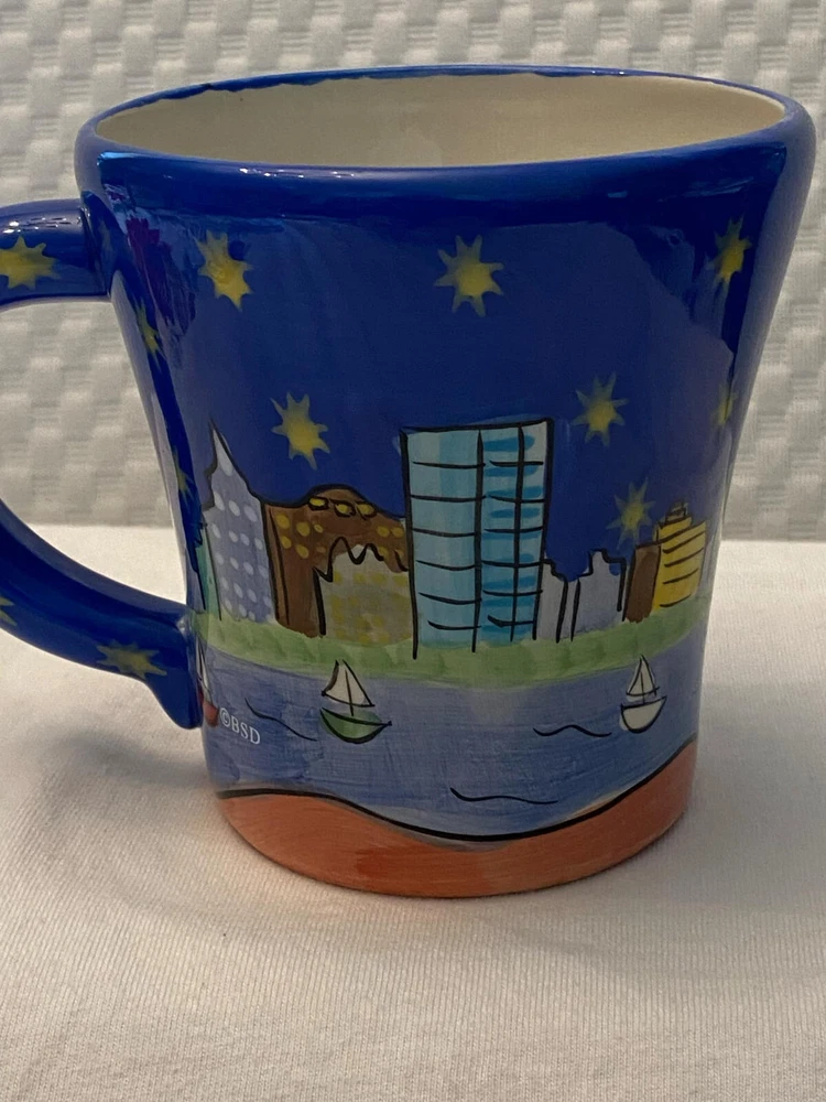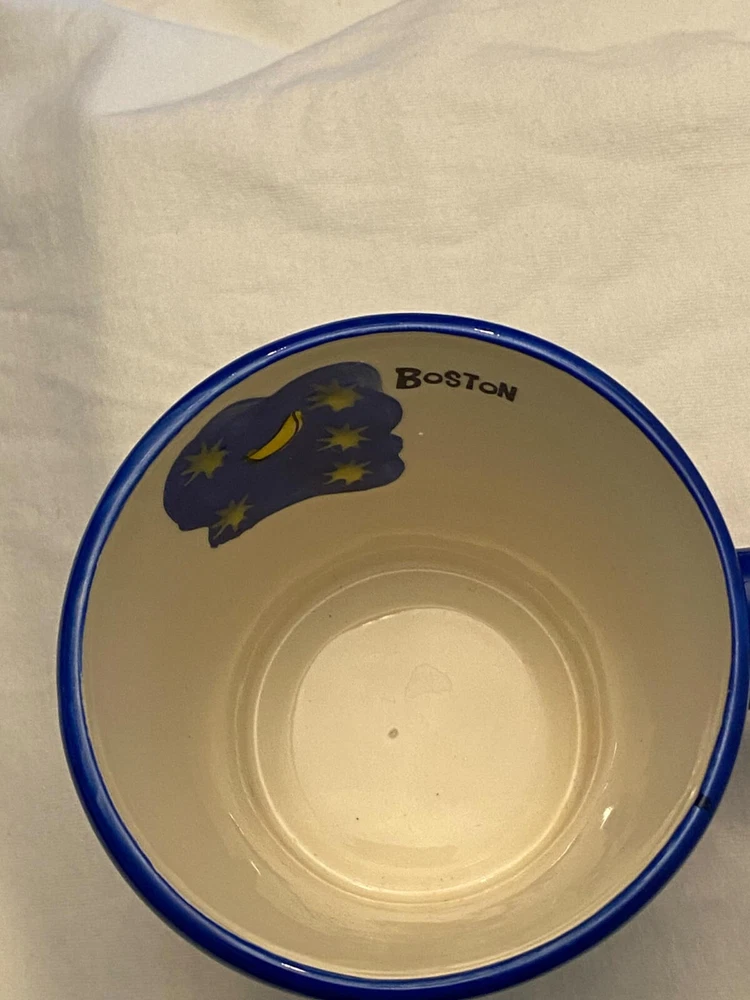 This Boston Mug is a perfect souvenir for those who love nautical and oceanic themes. With a round shape and multicolor pattern, this ceramic coffee mug is a great addition to any collection. It was manufactured in Indonesia in 1999 and has a glossy finish. The mug is part of the American gift product line and features a handle for easy carrying. It is also dishwasher safe and decorative. The backstamp is painted and the production technique is pottery. This vintage piece is perfect for all occasions and is ideal for teens and unisex adults.