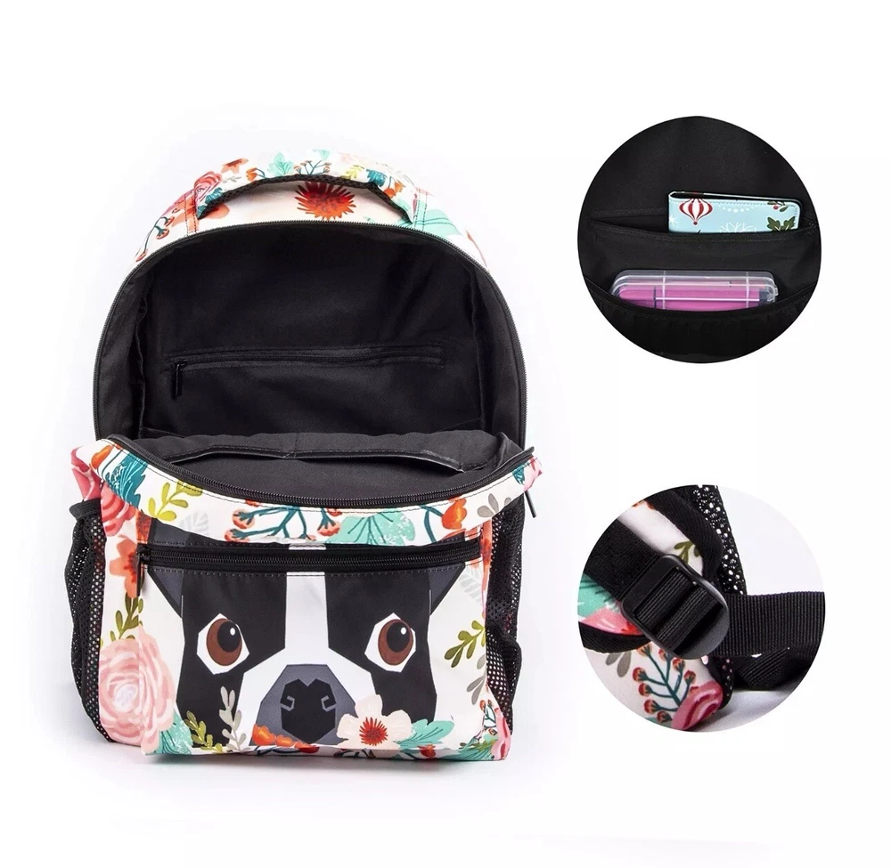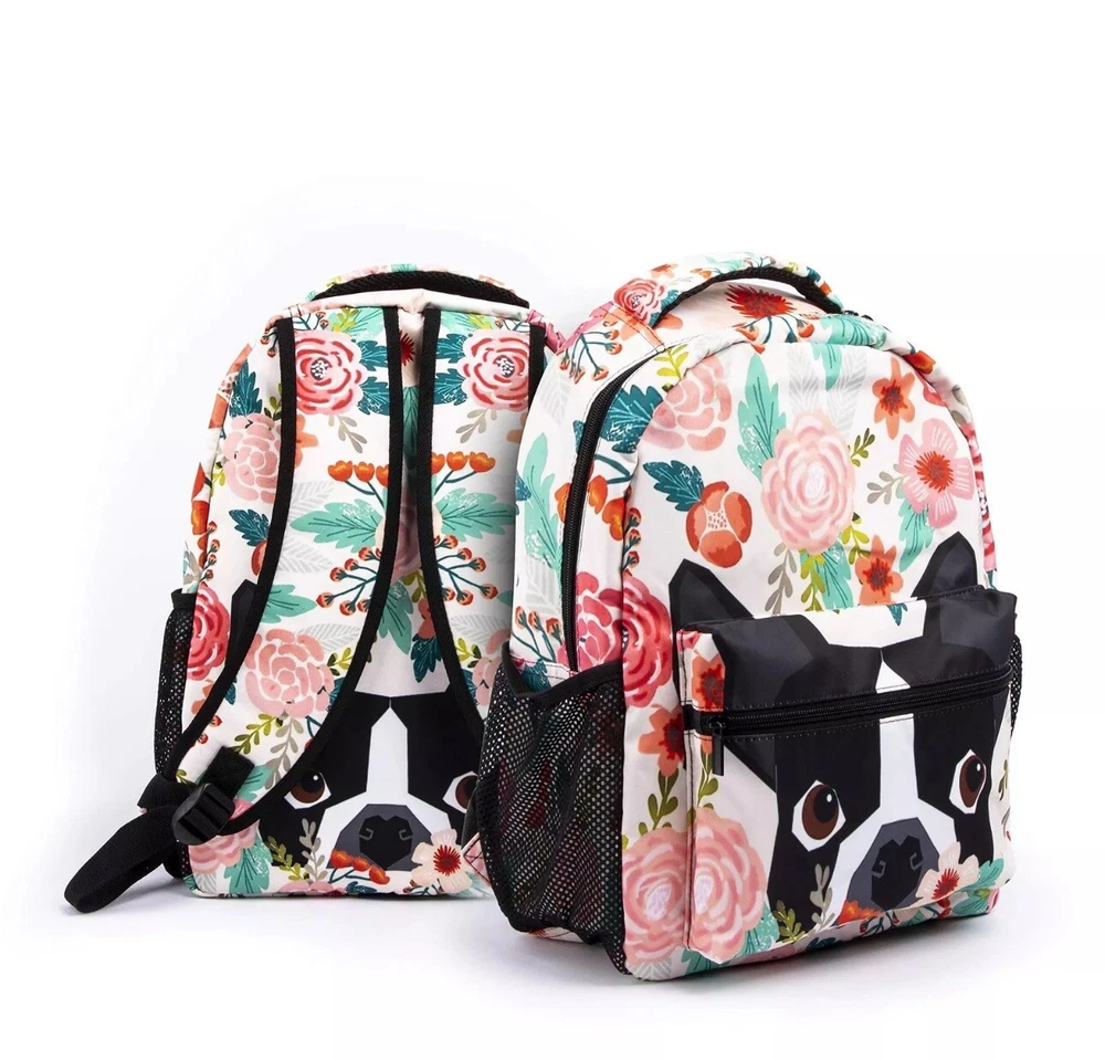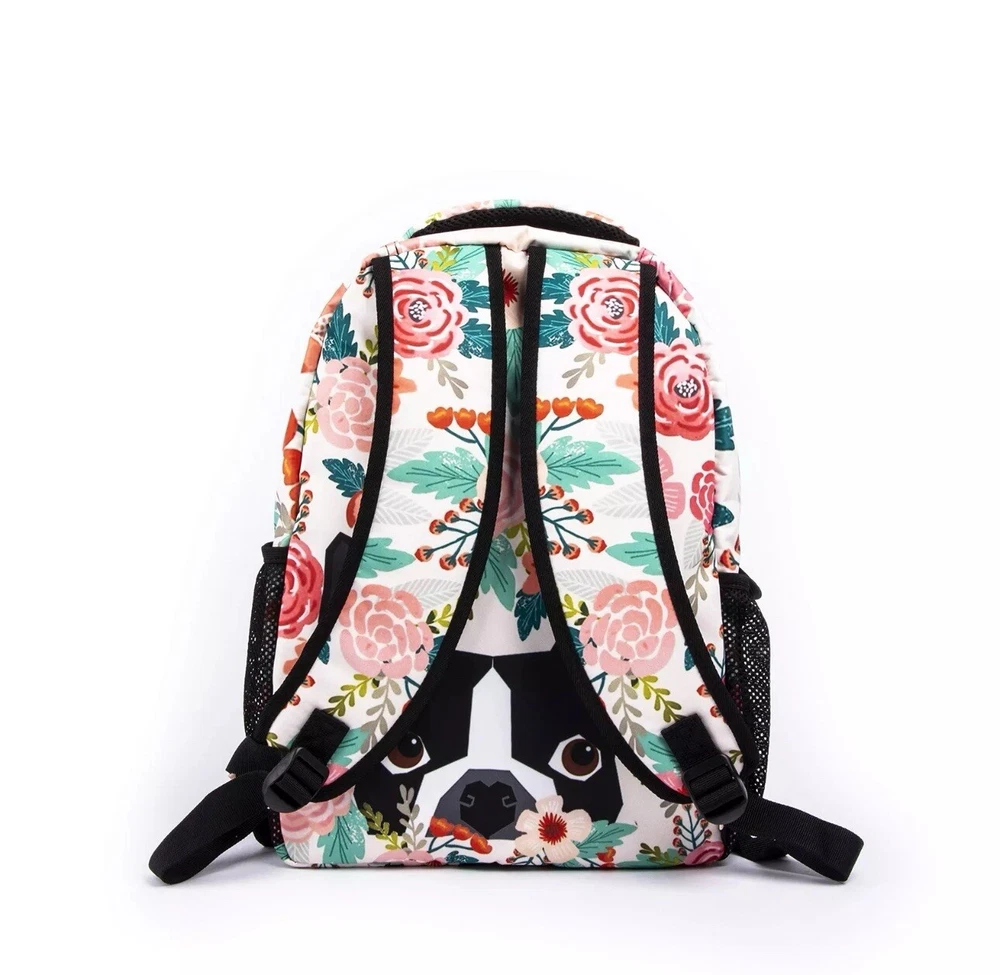 Boston Terrier Dog Florals School Backpack Colorful Flower Pug Bookbag Funny ...