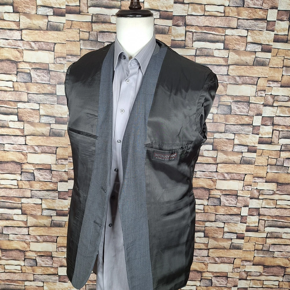 Botany 500 2 Piece Suit Mens 40R Athletic 33X31 Gray Plaid Vintage Quality used condition. Please check out the measurements before buying to ensure a perfect fit. Shirt Size on Label 40R Shoulder- Hem 30.00'' Shoulder- Shoulder 19.00'' Shoulder- Wrist 25.00'' Armpit- Armpit 22.00'' Top button 20.00'' Everything ships within a day. Spot cleaned according to manufacturer's recommendations. Has a chance of wrinkling in the mail. Feel free to message me with any questions. Thank you very much. 4/16/25 Pants Pleated Quality used condition. Please check out the measurements before buying to ensure a perfect fit. Pants Size on Label Ankle Opening 9.00'' Waist 33.00'' Waist- Crotch 11.00'' Inseam 31.00'' Extra inseam fabric 2.20'' Everything ships within a day. Spot cleaned according to manufacturer's recommendations. Has a chance of wrinkling in the mail. Feel free to message me with any questions. Thank you very much. 4/16/25