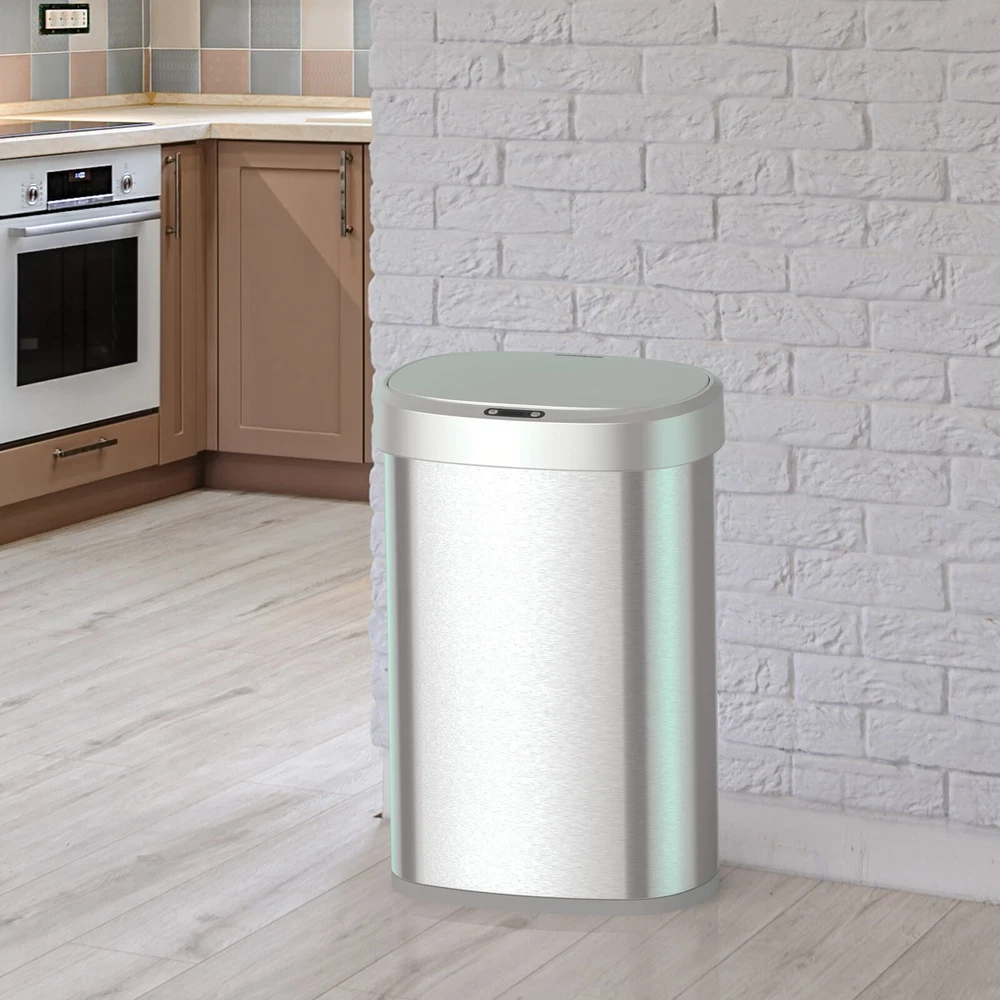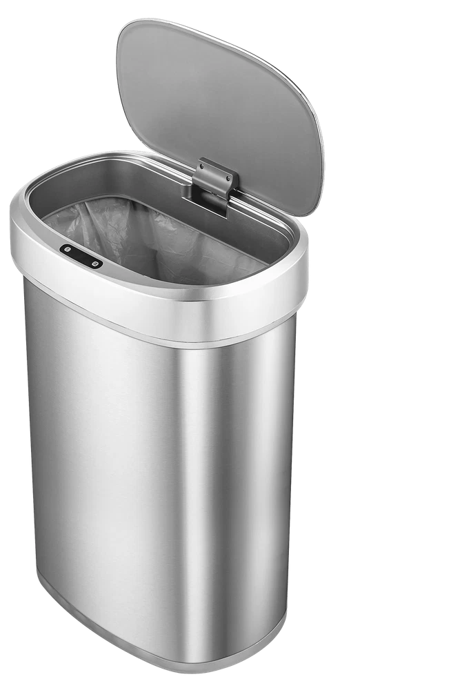Equipped with leading motion sensor technology, the dzt-50-49 motion sensor stainless steel trash can represents the ideal blend of form and function. Improve your living space, protect yourself from germs, and keep your hands free for the things that really matter. This unit has a total capacity of 13.2 gallons (50 liters), so it is large enough to accommodate your entire family and makes it perfect for kitchen, office, or public areas. Features: The hands-free lid opens with a simple wave of the hand. A removable ring liner keeps the trash bag securely in place and hidden from sight. Quiet motion soft-close lid with count-down timer, adjustable sensor, and a battery life indicator. Advanced infrared technology preserves motion sensor battery life. Non-skid base keeps your floor protected. Requires 3 "D" batteries (not included). Stainless steel body and lid. On Nov 25, 2024 at 19:57:21 PST, seller added the following information: