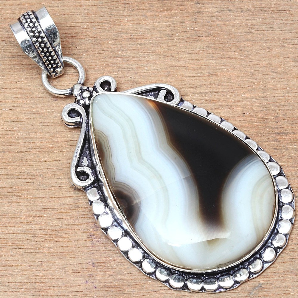 This stunning pendant features a gorgeous gray Botswana agate gemstone set in elegant 925 silver, making it a perfect Valentine's Day gift. The craftsmanship is exceptional, with a polished finish that catches the light beautifully. The 2.75" size is just right—subtle yet eye-catching. It feels lightweight and comfortable to wear, and the natural stone adds a unique earthy charm. The silver has a lovely shine, and the overall design is timeless. Great for gifting or treating yourself! Highly recommend for anyone who loves minimalist yet meaningful jewelry.