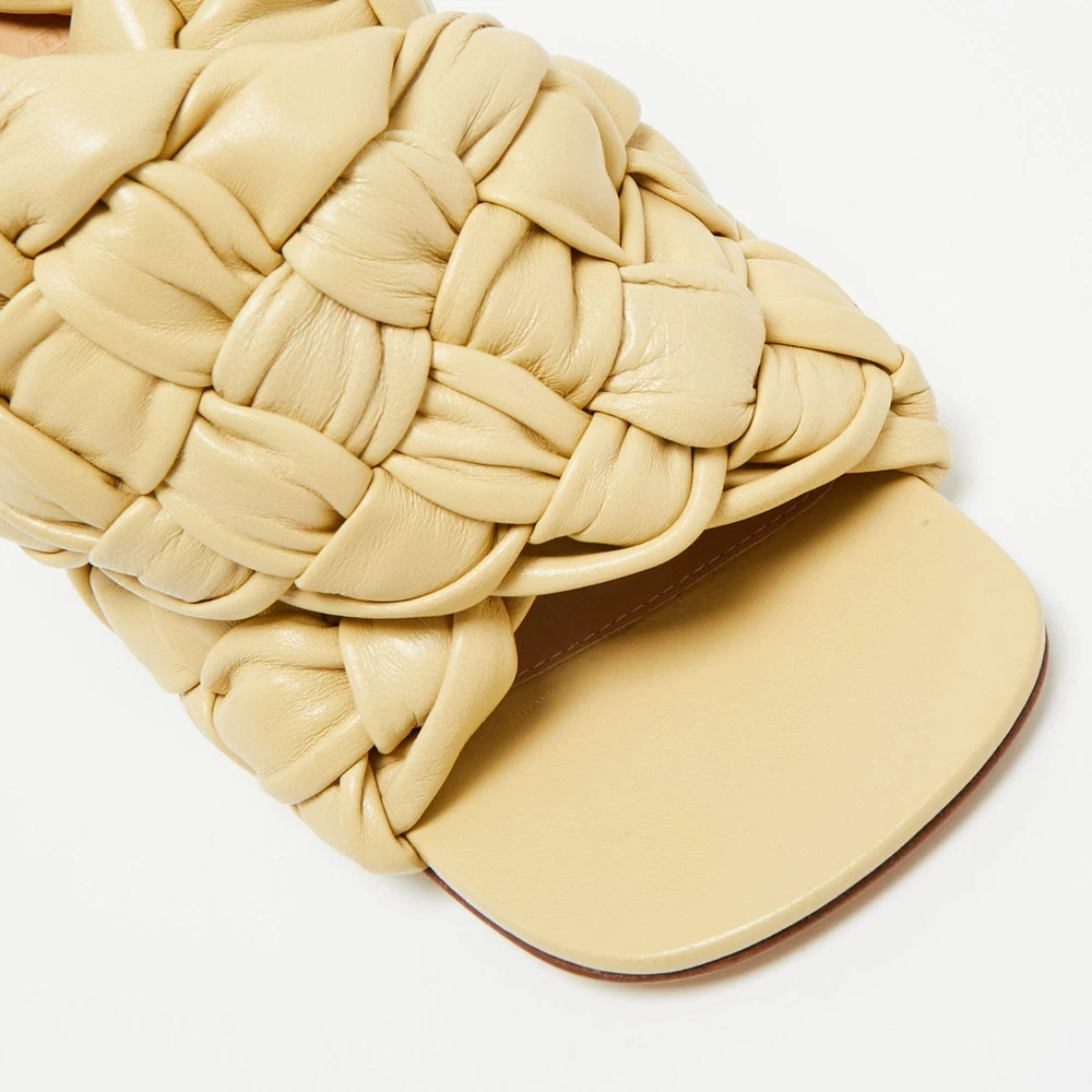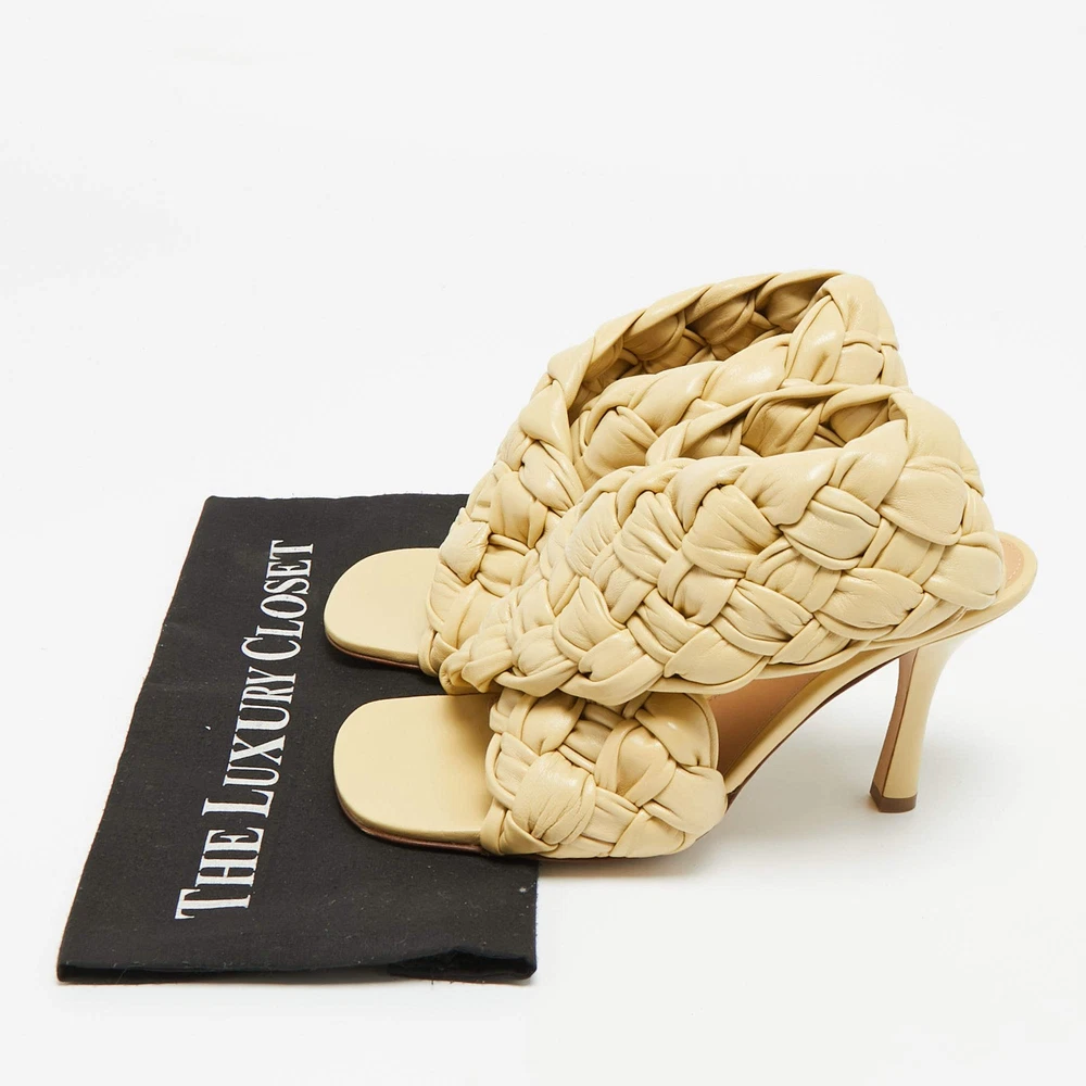 Our eBay Store About Us Contact Us Add to Favorite Sellers Bottega Veneta Beige Leather Intrecciato Ankle Strap Sandals Size 39 Bottega’s intrecciato weave, done in soft beige leather, brings touch and texture to an open-toe sandal. The 10 cm heel lifts the cross-over upper beautifully. Product Details Brand Bottega Veneta Color Beige Includes The Luxury Closet Packaging Outsole Length 23 cm Outsole Width 9 cm Size 39 Certified by The Luxury Closet This item has gone through a detailed authentication process overseen by our experts. We offer a lifetime guarantee of authenticity on all our items. How We Check The in-house team of experts at The Luxury Closet is highly trained to verify the authenticity and the condition of the luxury products. They ensure that only 100% authentic items are put on sale.The evaluation process is unique with its own mix of assessment criteria and differs according to the category. Each item is evaluated based on the following combination of hallmarks, hardware, stitching, symmetry, material, craftsmanship, stamping, codes, hologram stickers, and packaging. Our authenticators also check if the items have been modified or amended (e.g., aftermarket diamonds, replaced batteries, repaired bags, etc.) International Buyers Import duties, taxes and charges are not included in the item price. These charges are the buyers responsibility. Please check with your country’s customs office to determine what these additional cost will be prior to buying.