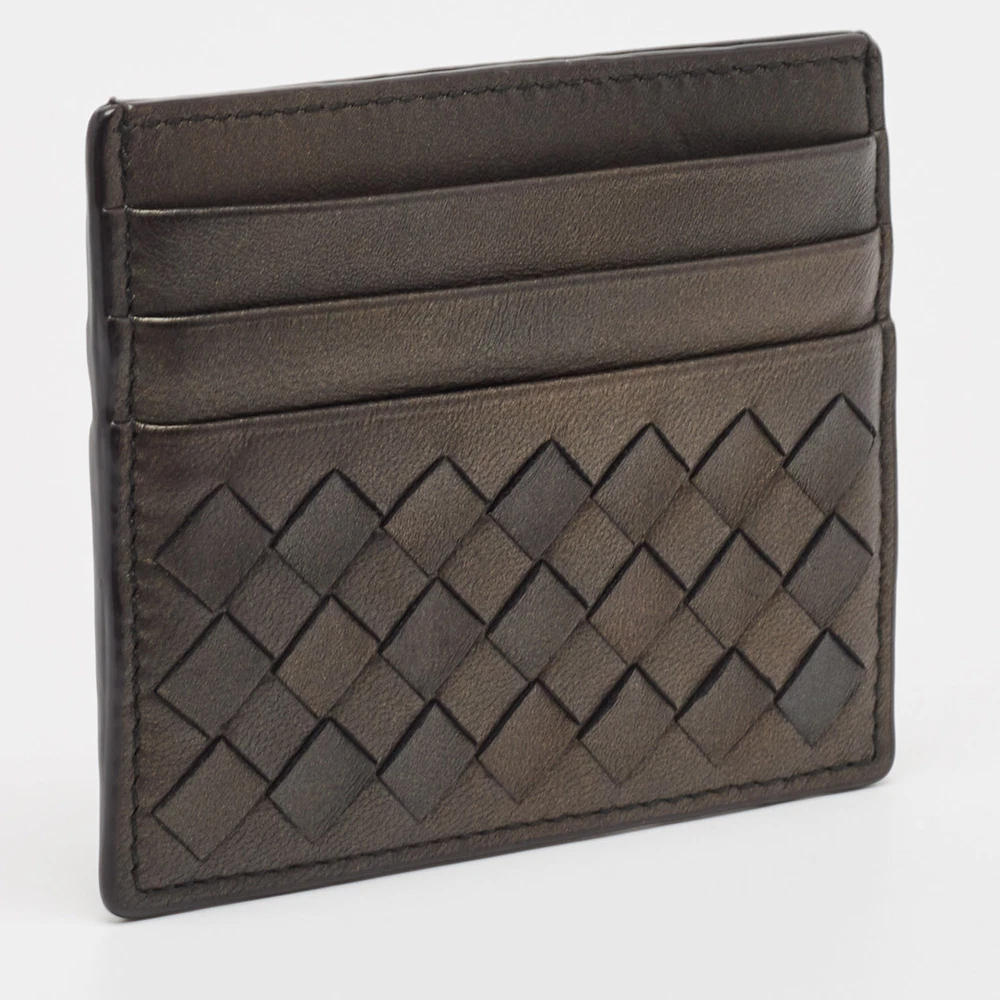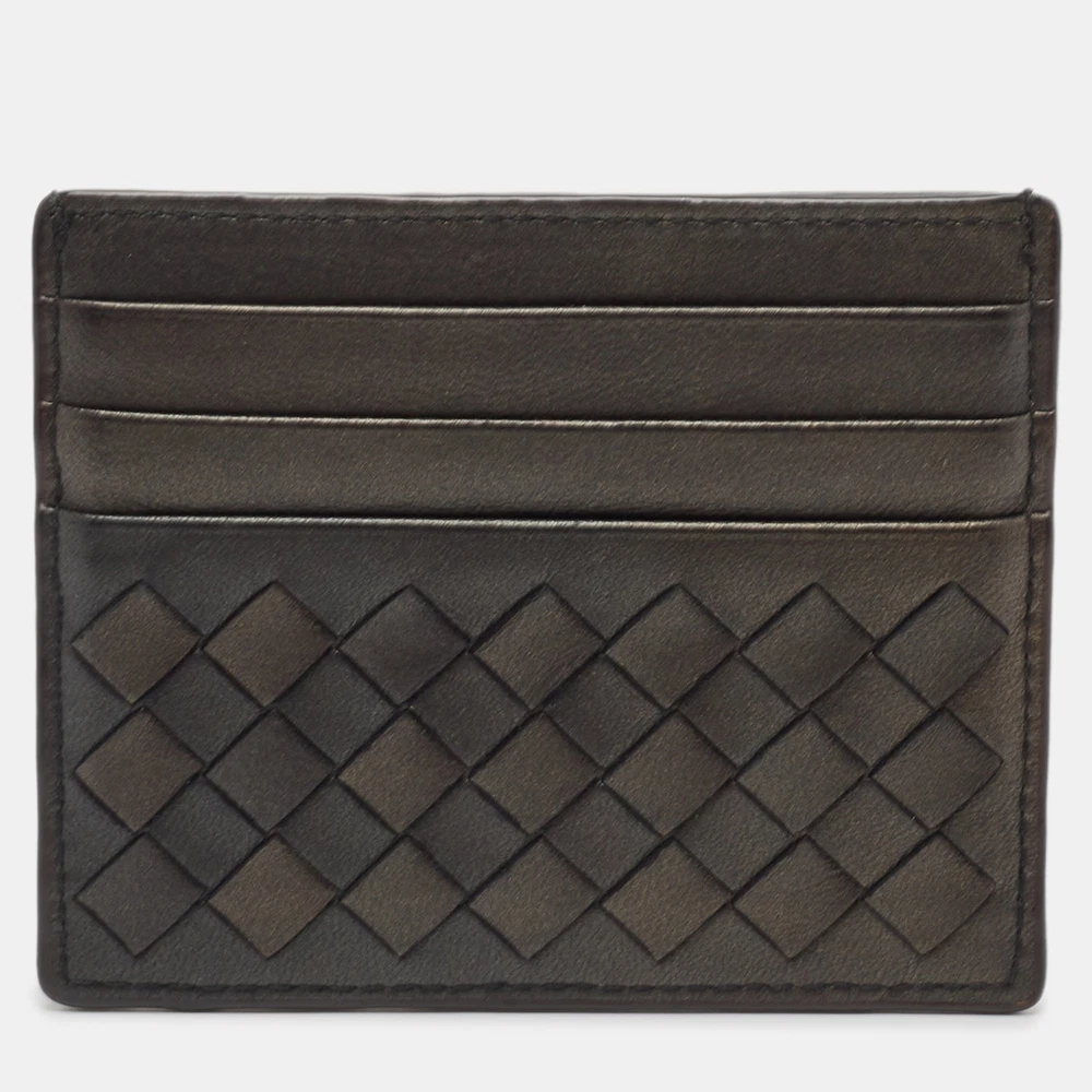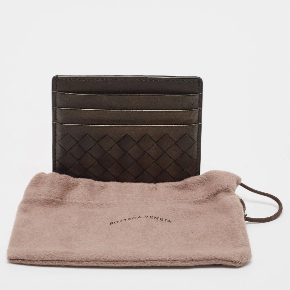 This card holder from Bottega Veneta is the most classy way to organize your essentials. It is made from brown Intrecciato leather on the exterior. It comes with multiple storage alternatives, which can house your cards and currency safely. Let your style look elegant with this stunning card holder.Certified by The Luxury Closet - This item has gone through a detailed authentication process overseen by our experts. We offer a lifetime guarantee of authenticity on all our items. Import duties, taxes and charges are not included in the item price. These charges are the buyers responsibility. Please check with your country’s customs office to determine what these additional cost will be prior to buying. Our eBay Store About Us Contact Us Add to Favorite Sellers Bottega Veneta Black Intrecciato Leather Card Holder $169.4 This card holder from Bottega Veneta is the most classy way to organize your essentials. It is made from brown Intrecciato leather on the exterior. It comes with multiple storage alternatives, which can house your cards and currency safely. Let your style look elegant with this stunning card holder. Product Details Brand Color Black Dimensions Height: 8 cm, Length: 10 cm Material Leather Size Outsole Width Outsole Length Heel Height Includes Original Dustbag Certified by The Luxury Closet This item has gone through a detailed authentication process overseen by our experts. We offer a lifetime guarantee of authenticity on all our items. How We Check The in-house team of experts at The Luxury Closet is highly trained to verify the authenticity and the condition of the luxury products. They ensure that only 100% authentic items are put on sale.The evaluation process is unique with its own mix of assessment criteria and differs according to the category. Each item is evaluated based on the following combination of hallmarks, hardware, stitching, symmetry, material, craftsmanship, stamping, codes, hologram stickers, and packaging. Our authenticators also check if the items have been modified or amended (e.g., aftermarket diamonds, replaced batteries, repaired bags, etc.) International Buyers Import duties, taxes and charges are not included in the item price. These charges are the buyers responsibility. Please check with your country’s customs office to determine what these additional cost will be prior to buying.