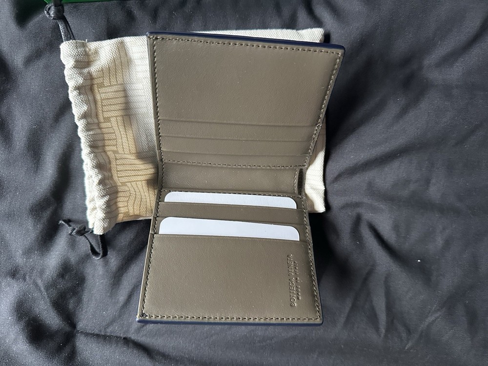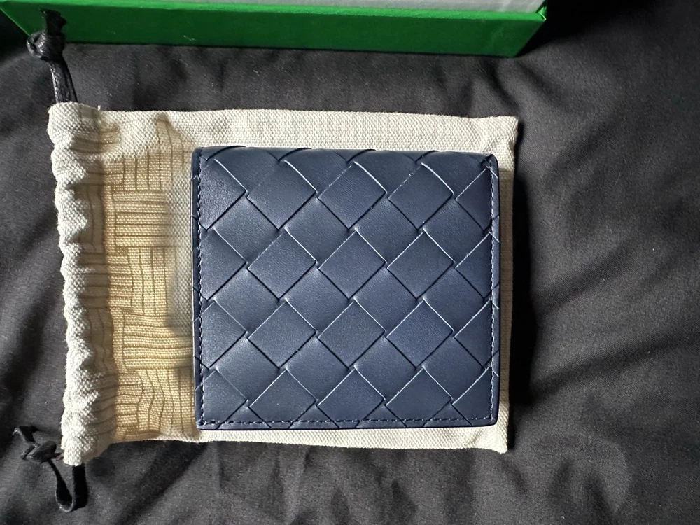 The Bottega Veneta Intrecciato Slim Wallet in Cypress/Abyss is a high-quality leather wallet designed for men. Crafted in Italy, this bifold wallet features a sleek solid pattern with a unique interwoven design. It includes multiple credit card slots and a folding design for added convenience. Perfect for those looking for a stylish and functional accessory to complement their wardrobe. NEW! IN HAND! NEVER USED!
