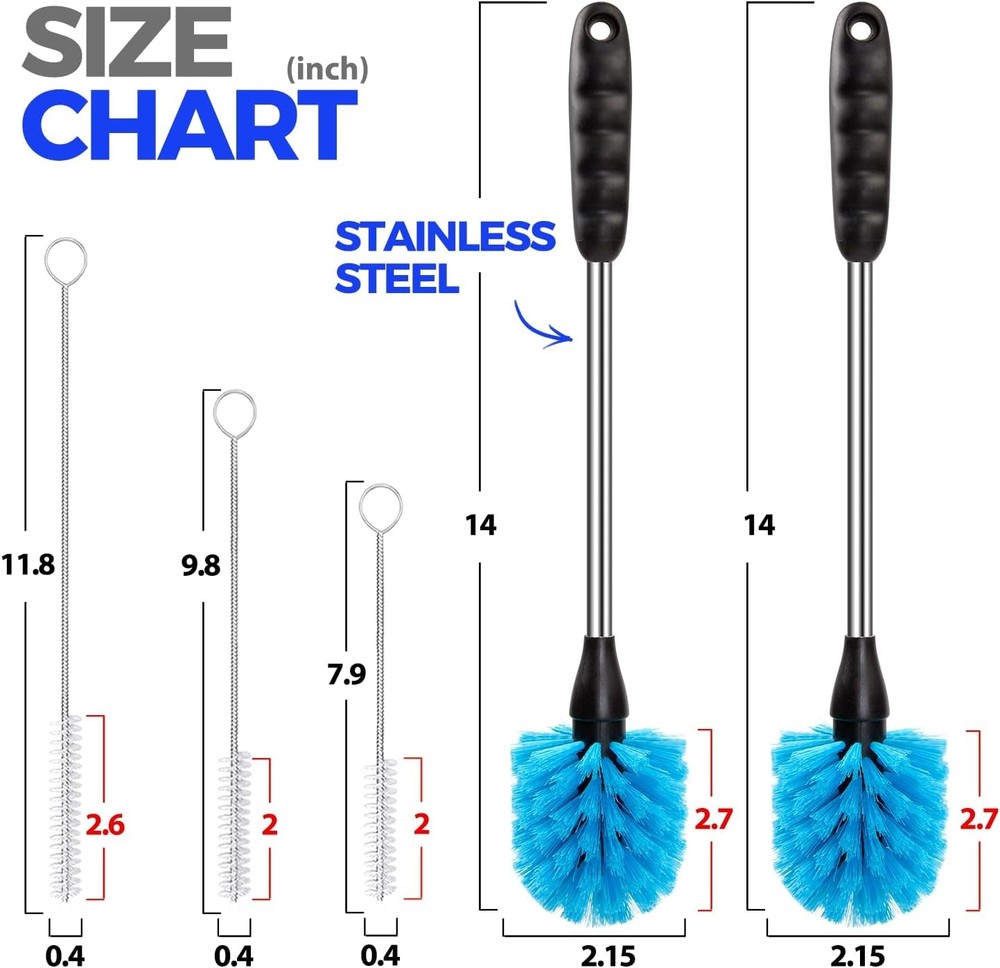 Bottle Brush Cleaner Set 14" Long Handle Stainless Steel Bottle Cleaner 5 Pack