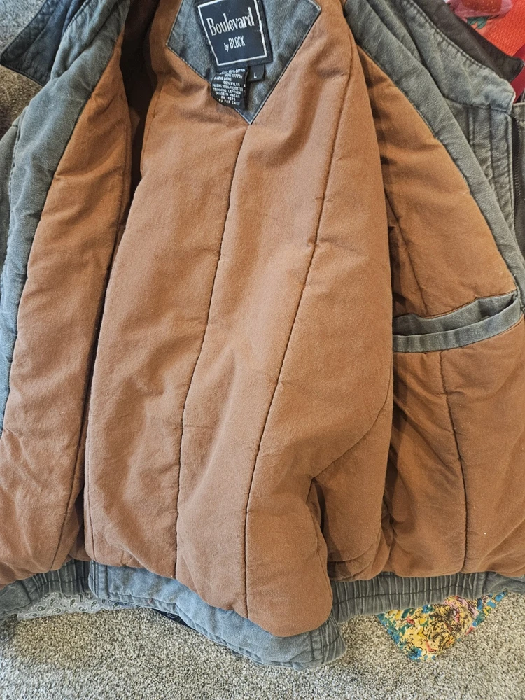 The Boulevard by Block Men's VTG Denim Bomber Jacket is a stylish and trendy piece perfect for the modern man's wardrobe. Made from durable cotton denim with a unique quilted lining, this short-length jacket features a relaxed fit and a convenient zip closure. The vintage style, Y2K-inspired design, and gray color make it versatile for casual occasions in the winter and fall seasons. Additionally, the jacket includes practical features like a hood, pockets, and a solid pattern, making it a must-have for those who appreciate streetwear fashion with a touch of grunge and 90s flair.