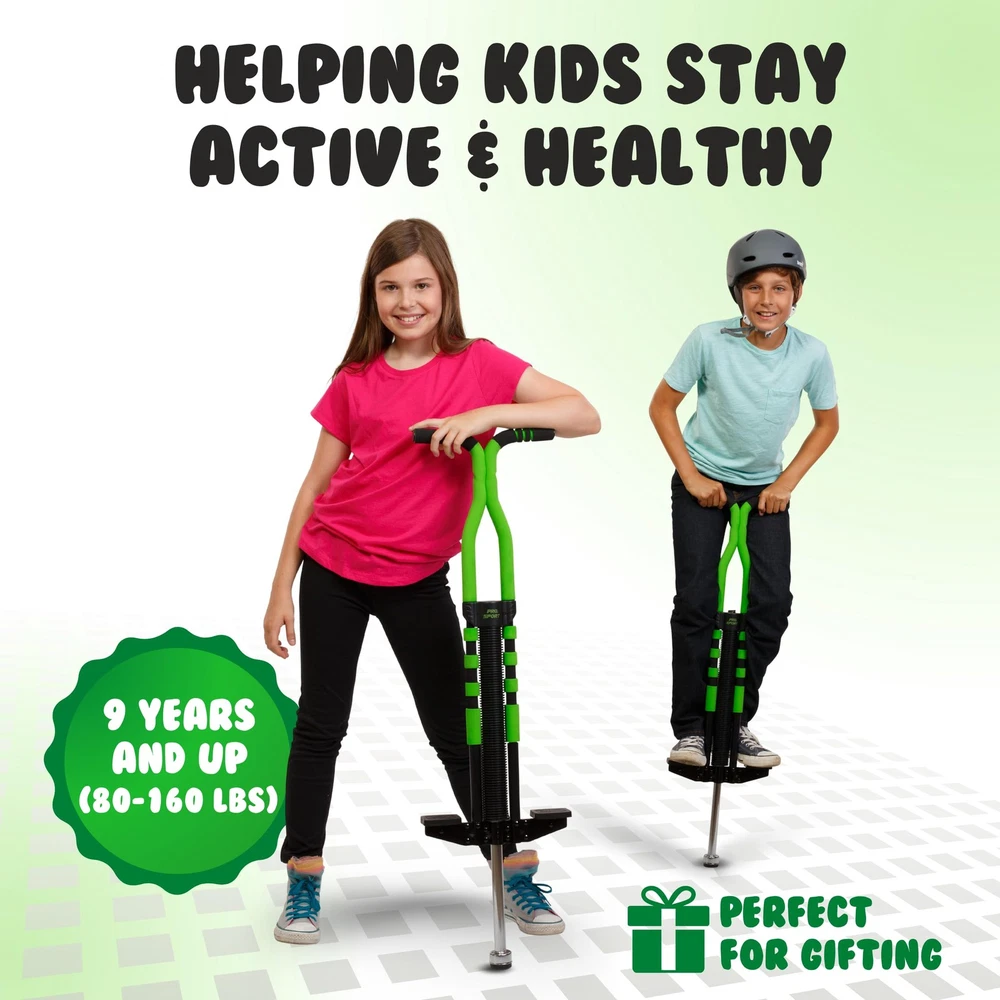Pogo Stick This rugged pogo stick is perfect for beginner to intermediate riders. Recommended for children 9 and up, this modern adaptation of the classic toy will guarantee hours of wholesome fun. Easily supports up to 160 lbs. The minimum weight required to be able to use the pogo stick is 80 lbs. It is sure to promote healthy and exciting fun for boys and girls of all ages. The Pogo Stick features a metal frame covered in precision-made foam, replaceable non-slip foot pads, and easy-grip foam handles. Safety is a priority Designed to be safe as well as fun for children, we took many precautions to ensure the safety of your child. Wide stance and easy grip handles provide better balance. Replaceable non-slip foot pads for increased stability. Foam coating keeps you and the pogostick better protected. It is always recommended to use safety gear and helmets while using the pogo stick. Only use and a flat, firm surface. Great Exercise Opportunity. You can burn up to 300 calories in half an hour by pogoing. Awesome way to lose weight and improve balance. Your back is the cornerstone of pogo stick movements. As you work to maintain your balance, your back gets a workout, and every move you make on the pogo stick requires your back to help stabilize you. You can also focuse on your core by tensing your abs as you jump up and down. is known for providing quality products at an outstanding value. Our mission is to provide your children with toys, games, and play accessories that they can enjoy for years to come. So rest assured that you are buying the best of the best. If you ever have any issue with any of our products, our friendly customer service team is standing by to take your call and resolve the matter. Perfect for Big Kids - Designed for older kids (and adults), the Pogo Stick can withstand up to 80-160 lbs. Great for beginner & intermediate jumpers. Top Quality - The Pogo Sticks are made of top quality materials to ensure the utmost durability. The fun colors enhance the hours of possible fun. Easy-Grip Foam Handles And Frame - Added for your comfort and safety, the foam coating provides a great cushioned grip. Quality - The pogo sticks are made of top quality material at every step of the manufacturing process. The pogo sticks are made to last. Wider Stance - The specially designed wide stance is more stable, and makes it easier to bounce with. Safety gear and helmets are advised.