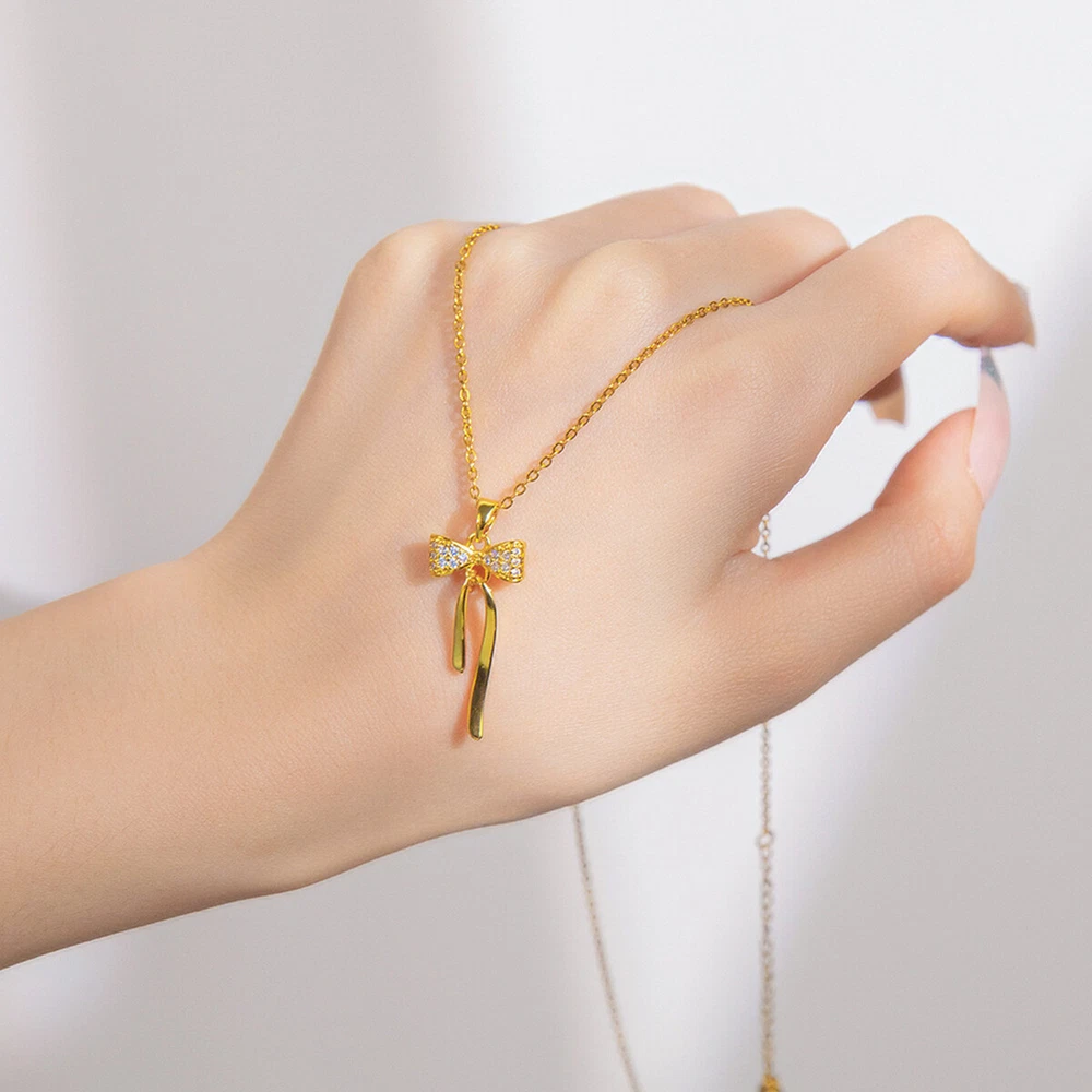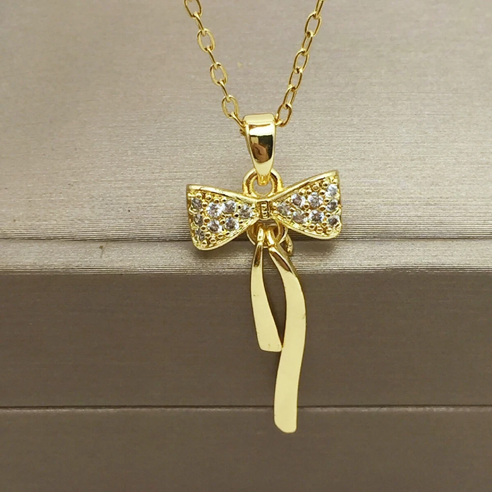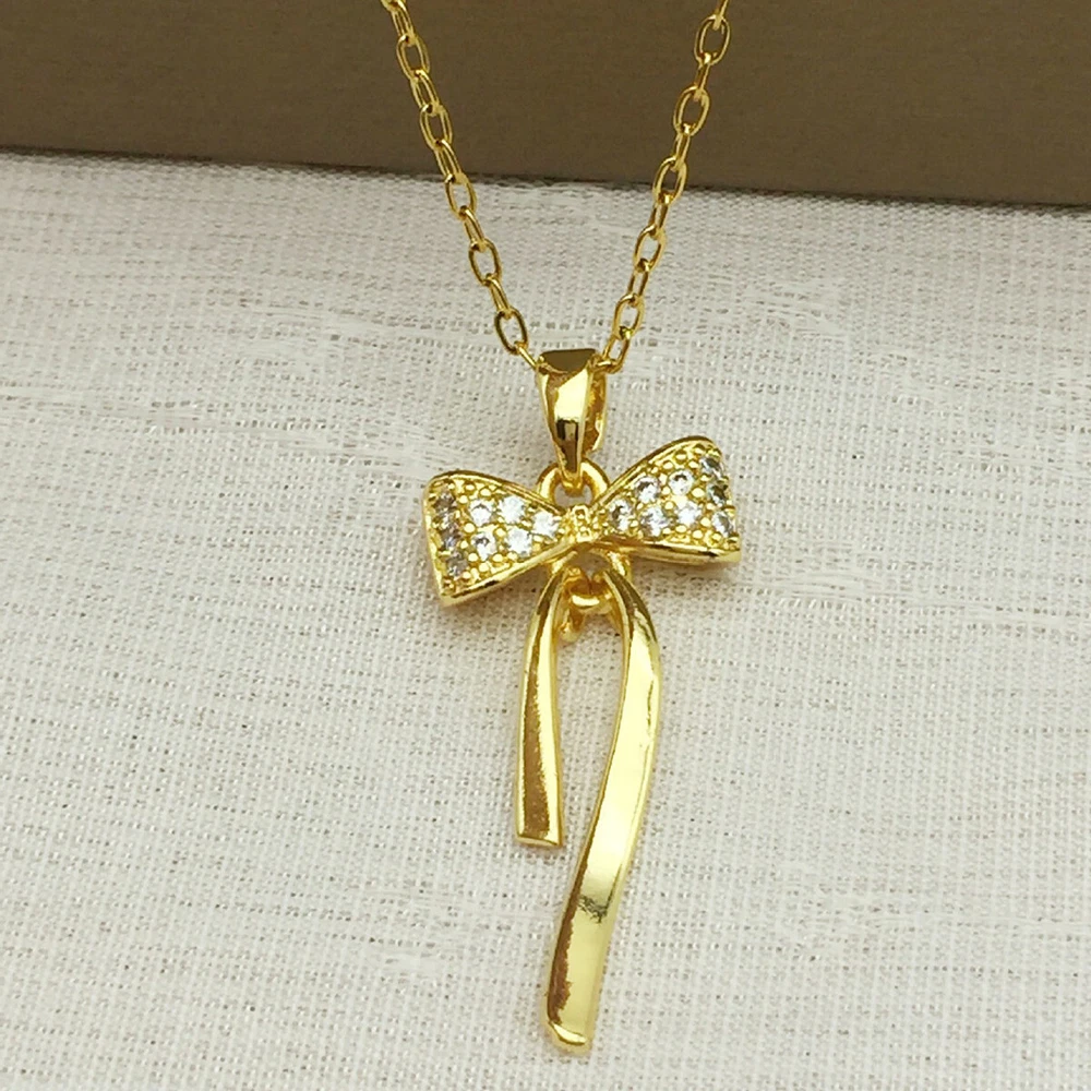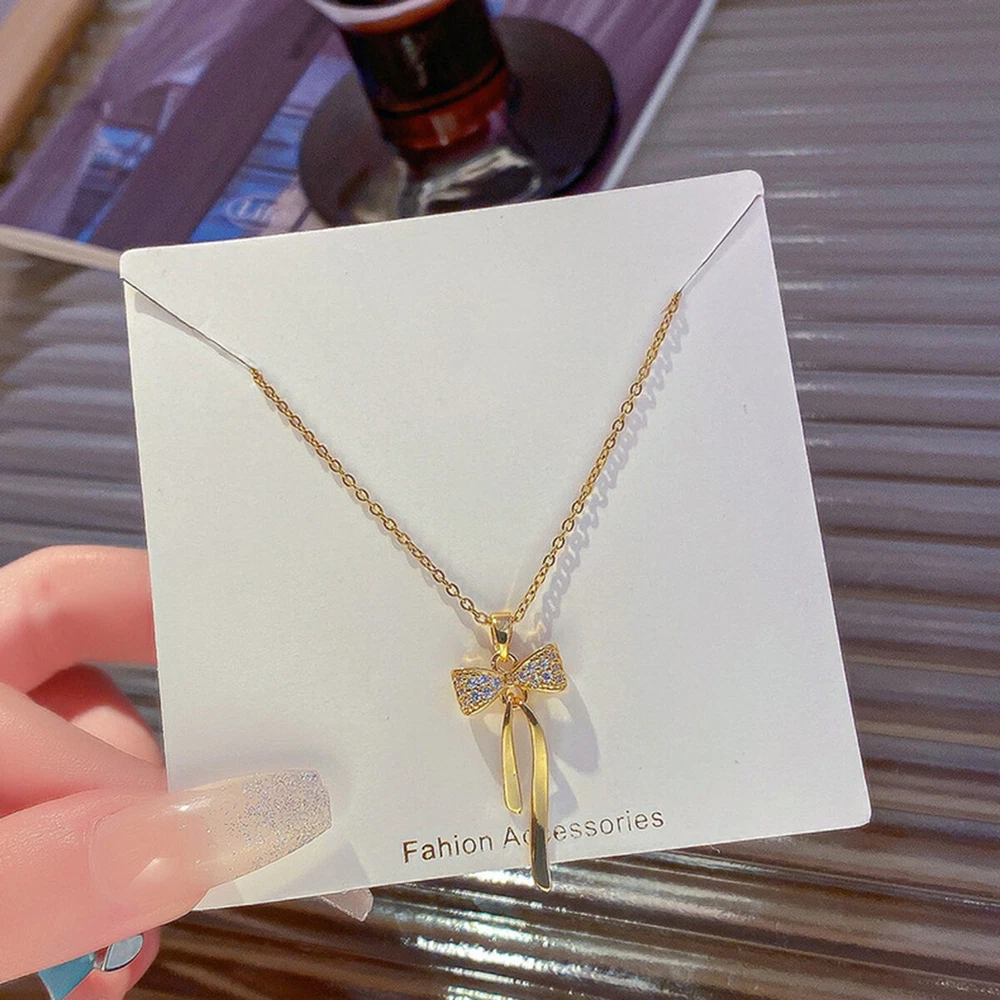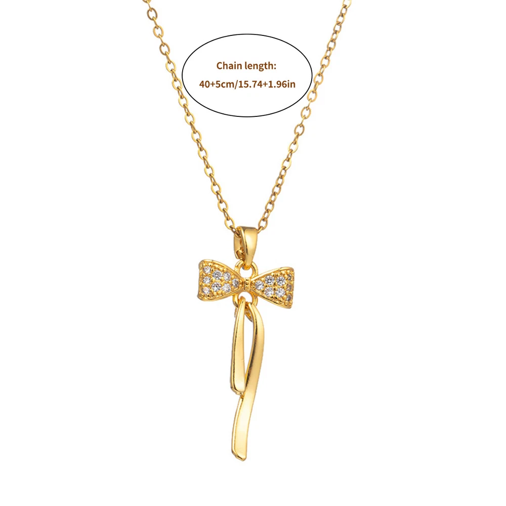 Features: Luxury Bowknot Ribbon Pendant Necklace for Women Exquisite Zircon Clavicle Chain Necklace Party Wedding Jewelry Often suitable for parties, offices, dances, festivals, daily life. It is a romantic style with an elegant look. Specifications: Material: Titanium Steel, Copper Size: 40+5cm Color: Gold Packing List: 1 Necklace Maintenance Tips: 1. Be careful to avoid abrasion and sudden impact. 2. Keep dry and avoid wearing it when bathing or swimming. 3. Store in a box or soft cloth. Notes: Conversion: 1 cm = 10 mm = 0.39 inches. Due to manual measurement, there may be an error of 0 to 1 cm. Warning. Please check carefully before making a purchase decision. Due to different monitors, the color of the product photo may be different from the actual color. On Dec 4, 2024 at 00:45:30 PST, seller added the following information: