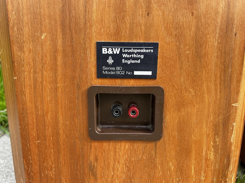 For Sale: Bowers & Wilkins B&W Series 80 Model 802 Speakers These classic speakers are in very good Working condition Specifications: Frequency Response: 55Hz to 20 kHz +- 2dB Low Frequency System: Closed box acoustic suspension with system resonance of 49Hz Dispersion: Vertical: ± 1dB over 10 degrees of center window Horizontal: +0, -3dB over 60 degrees of center window, 20Hz to 13kHz Drive Units: Vertical in-line configuration corrected for minimum inter-unit time delay Computer matched in pairs ensuring accuracy typically better than 0.25dB Bass Drivers (2): Diaphragm: 6.5” Thermos plastic cone with PVA compound coating Ultra long throw suspension Voice Coil: 38mm D high temperature Nomex Magnet System: 2.25kg, ceramic Midrange Driver: Diaphragm: 4” D aromatic polyamide fiber matrix cone, critically formed and PVA impregnated following a laser interferometry computer-linked pattern Voice Coil: 25mm phenolic bonded and aluminum lined Magnet System: Ceramic High-Frequency Driver: Diaphragm: 1” multi filament polyester weave dome, mechanically dampened Voice Coil: 1” high temperatures epoxy impregnated Magnet System: High energy nickel cobalt, center pole Impedance: 8 ohms nominal throughout entire operating range Sensitivity: 1W into 8 ohm load for a spl of 85dB at 1m, sinewave input at 300Hz Power Limit: Minimum 80W into 8 ohms No upper limit because of overload protection device Dimensions: Height 41" x Width 11 ¾ ” x Depth 14 ½ ” Weight: 72 lbs