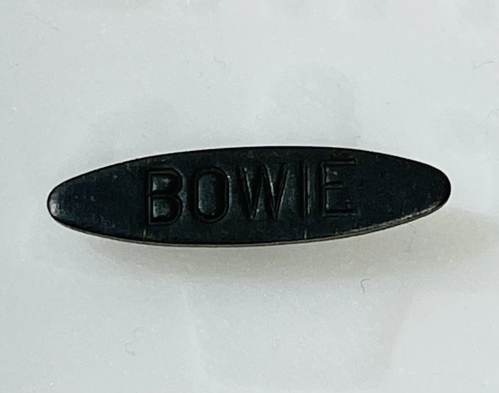 The Bowie emblem measures 7/8” long x 1/4“ wide with the tack measuring 1/2 inch. They are new old stock with some. Wear present, I have available and can be bundled for the same shipping cost .