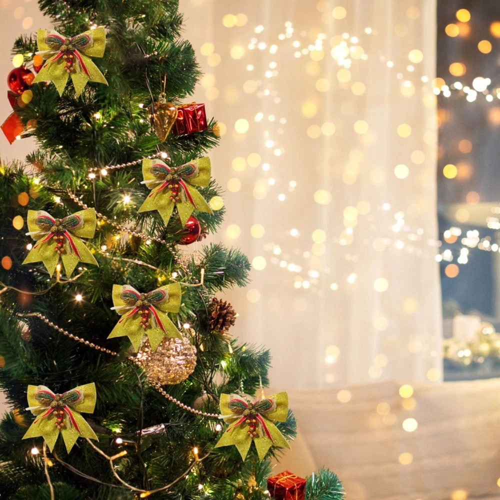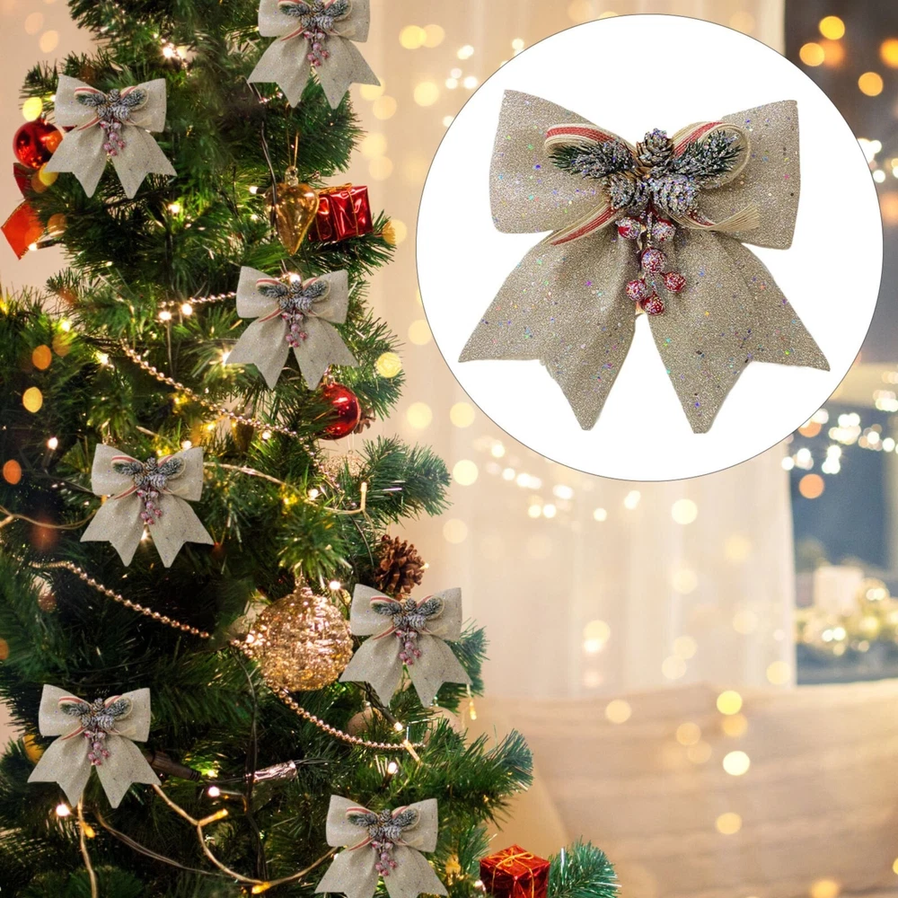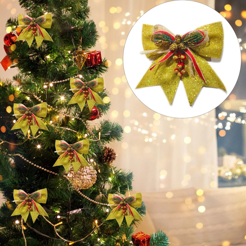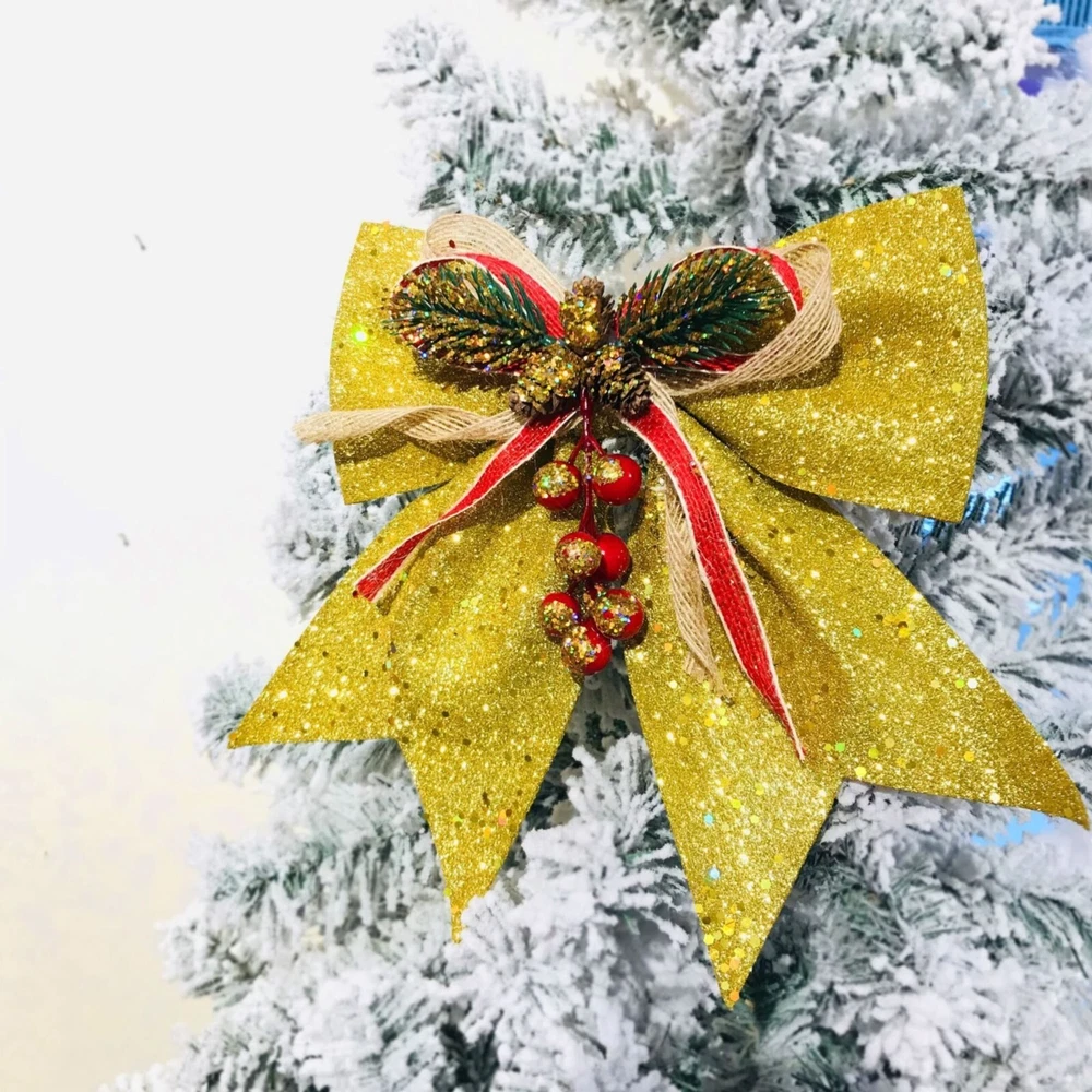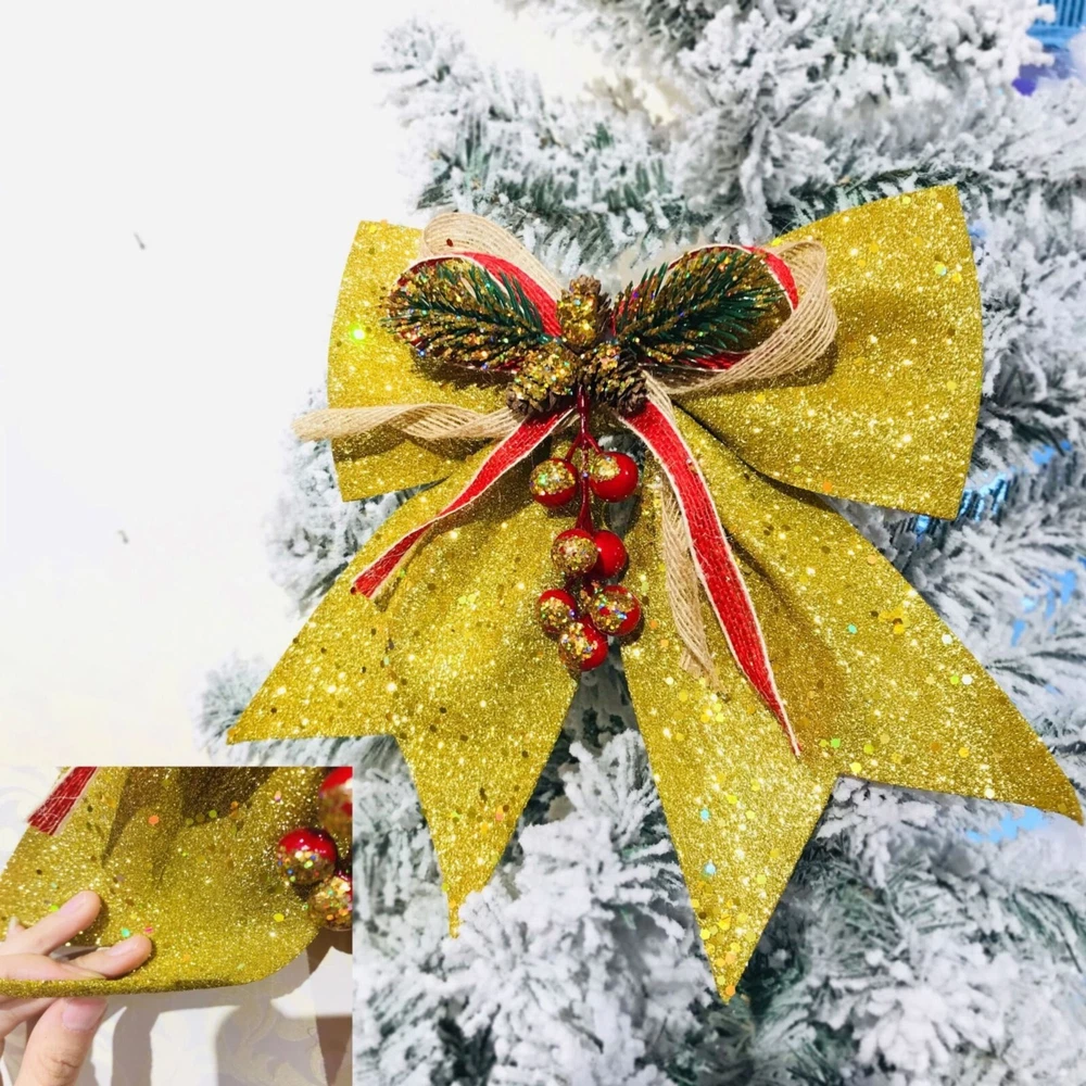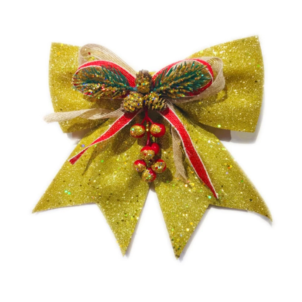 Christmas Decorative Bows For Wreath Garland Treetopper Christmas Tree Golden Bow Christmas Tree Ornaments Christmas Decoration Bowknot Features: Richly decorated in with glitters, sequins, and Use them to decoration your trees, treetop, garland, wreath, lightpost, gift boxes, , fences, and much more Bring holiday atmosphere to your house right , spirit and impress friends and family members It is composed of plastic red fruit, plastic green branch, plastic and ribbon Applicable: it is very suitable for home decoration, hotel decoration, malls and other venues to make the festival atmosphere stronger. Product Description: Christmas Decorative Bows for Wreath Garland Treetopper Christmas Tree Golden Bow Christmas Tree Ornaments Christmas Decoration Bowknot Material: cloth Color: as the picture shows, (Due to the difference between different monitors, the picture may have slight color difference. please make sure you do not mind before ordering, Thank you!) Package weight: 100g Package size: 29x25x2cm,(Please allow 1-3mm error due to manual measurement. please make sure you do not mind before ordering.)
