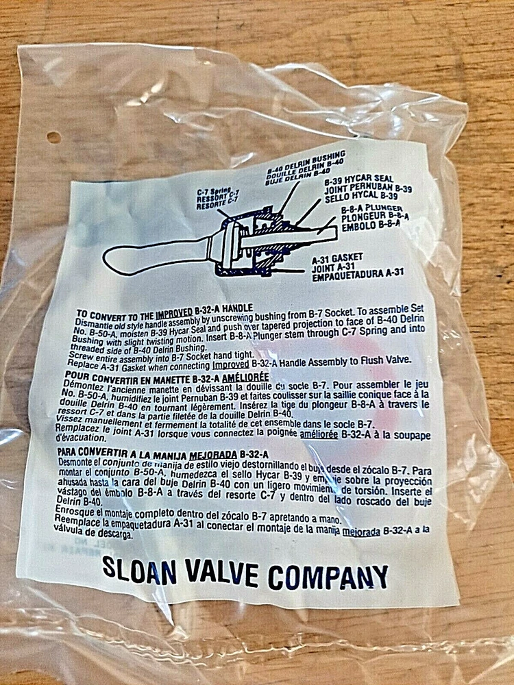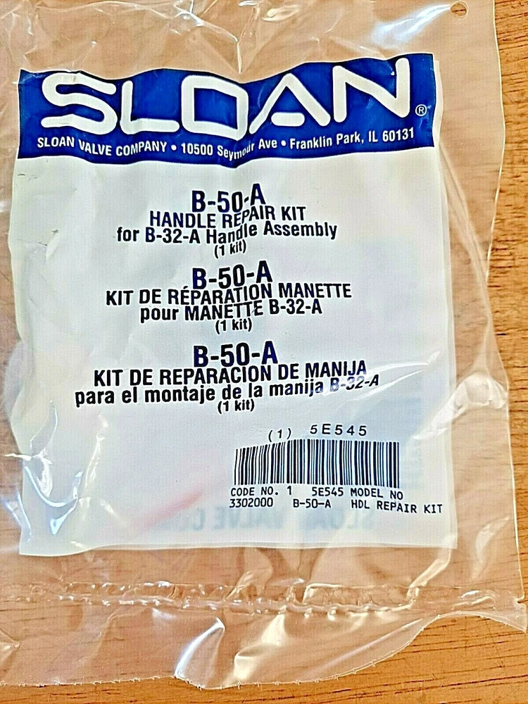 Country/Region of Manufacture: US Type: Plumbing Repair Kit gtin13: 671254044692 Brand: SLOAN Regal Items Included: Flush handle kit Custom Bundle: No Room: Bathroom Flushing Technology: n/a UPC: 671254044692 Color: N/A Features: Handle Repair Kit Shape: n/a Item Height: n/a Item Width: n/a Item Diameter: N/A Item Length: n/a MPN: B50A Model: B50A Bowl Shape: Elongated Standard