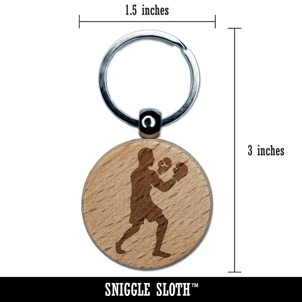 Boxer Boxing Fighting Pose Engraved Wood Round Keychain Tag Charm