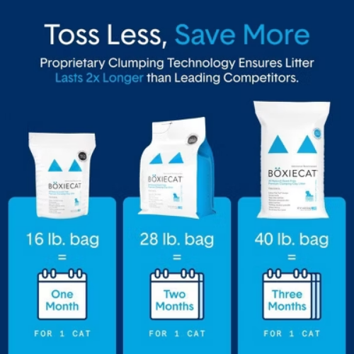 Important Note for Our Valued Customers: To offer you the best prices with free shipping, we occasionally experience shipping delays. If this happens, we’ll notify you immediately, issue a full refund, and invite you to place a new order at your convenience. To keep costs low, we sometimes reuse branded packaging boxes for shipments—we appreciate your understanding if you receive your order in repurposed packaging. Rest assured, all products we sell are 100% brand new, unopened, and freshly manufactured, including pet food and human-grade items, with a minimum 8-month shelf life remaining. If any issues arise, please contact us first—we’re committed to resolving them quickly. If you’re not completely satisfied, we offer a full refund with no hassle. Thank you for your trust and support! Description Discover the perfect balance of cat comfort, home freshness, and easy maintenance with Boxie® Unscented Cat and Kitty Litter. Our advanced odor control formula uses natural, 100% Bentonite clay to form hard, tight clumps that stay on top, trapping odors and keeping litter cleaner and drier longer. Ideal for single and multi-cat homes, this dust-free litter keeps your space fresh and clean, with one 16lb bag lasting approximately one month for one cat. Boxie® is compatible with all litter box types—regular, sifting, or automatic—ensuring minimal mess and simple upkeep. Made without added fragrances or harsh chemicals, our unscented litter is a healthier choice for your home and a happier choice for your cat and kitten. Trust Boxie® Unscented Cat Litter for a long-lasting, natural solution to your litter box needs. highlights 30-Day Odor Control: Guaranteed 2x longer lasting Eliminates Ammonia Odors: Fresher home 99.9% Dust-Free: Minimizes tracking, allergy-friendly Hypoallergenic: Ideal for sensitive cats and kittens Easy Clean, Non-Stick: Instant, firm clumps Monthly Replacement: Absorbs more, convenient and valuable Veterinarian Approved: Safe for your cat, kitty, and home No Harsh Chemicals: Free from fragrances, preservatives