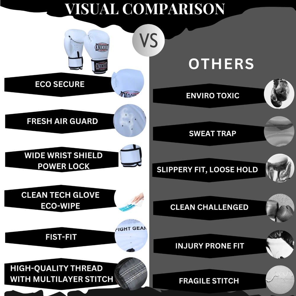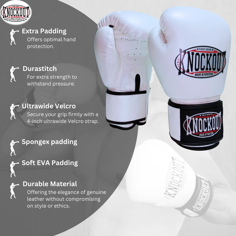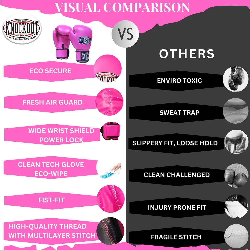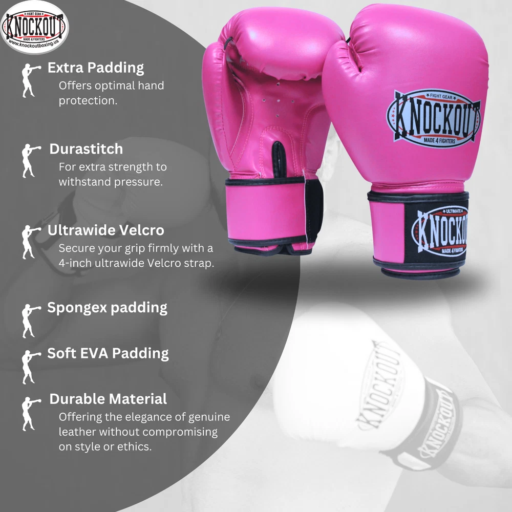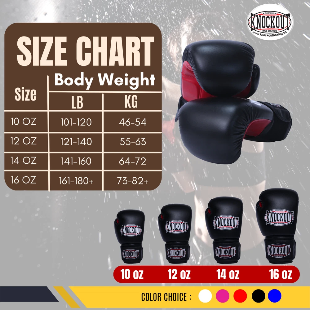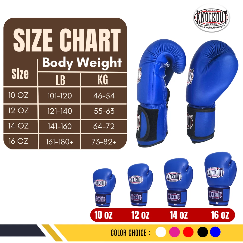 🔰 Reliable One-Stop Shop - Our high-grade Rex Leather boxing gloves women / men are designed for exceptional durability and reliability during Muay Thai, Kickboxing & Other combat sports training. We provide top-notch boxing equipment, customer service and a comprehensive warranty to back our products. Choose our boxing gloves men for long-lasting quality and join our community of passionate combat sports enthusiasts. 🔰 SHOCK ABSORPTION – Force of impact is dissipated across the structure on our guantes de boxeo due to the presence of forced molded extra padding which results in a confident & comfortable training experience for the users. Can be used as kickboxing gloves, heavy bag gloves, punching bag gloves, training boxing gloves and sparring gloves. The Ultra wide wrist support will protect your ankle from any pain or heavy jerks. 🔰 ADJUST FIST POSTURE – The boxing gear for men use Grip Bar in the upper palm area to allow the fighting gloves for boxing to attain the optimal posture for powerful punches during training and competitions. Allows your hands to breathe & ventilates the heavy bag boxing gloves to keep the hands dry. Velcro closing strap is a Quick Touch Fasteners that make it easy to put on or take off the boxing gloves 16 oz. 🔰 IMPROVED ALIGNMENT – Extra Thumb support with the palm area helps create an improved alignment between the fist and thumb which allows the users to punch better. These muay thai gloves keeps your hands snug and protected inside. We took strong measures to put enough padding on our boxing training gloves to absorb all the shocks coming from your heavy punches. Easy To Clean With Wet Towel,With Breathable Mesh To Ventilate Sweat From Inner Side, The airing Can Help You Get Rid Of Annoying Odor. 🔰 FIND YOUR PERFECT FIT : Our adult boxing gloves come in sizes from 10oz boxing gloves to 16oz boxing gloves, ideal for men & women. Choose from 5 vibrant colors pink boxing gloves for women, red boxing gloves, blue, white, black boxing gloves for men to express your style in the ring. We offer 2 year warranty and here to back our product with our physical stores. The other sizes are 12oz boxing gloves for men, 14oz boxing gloves for men. www.knockoutboxing.us