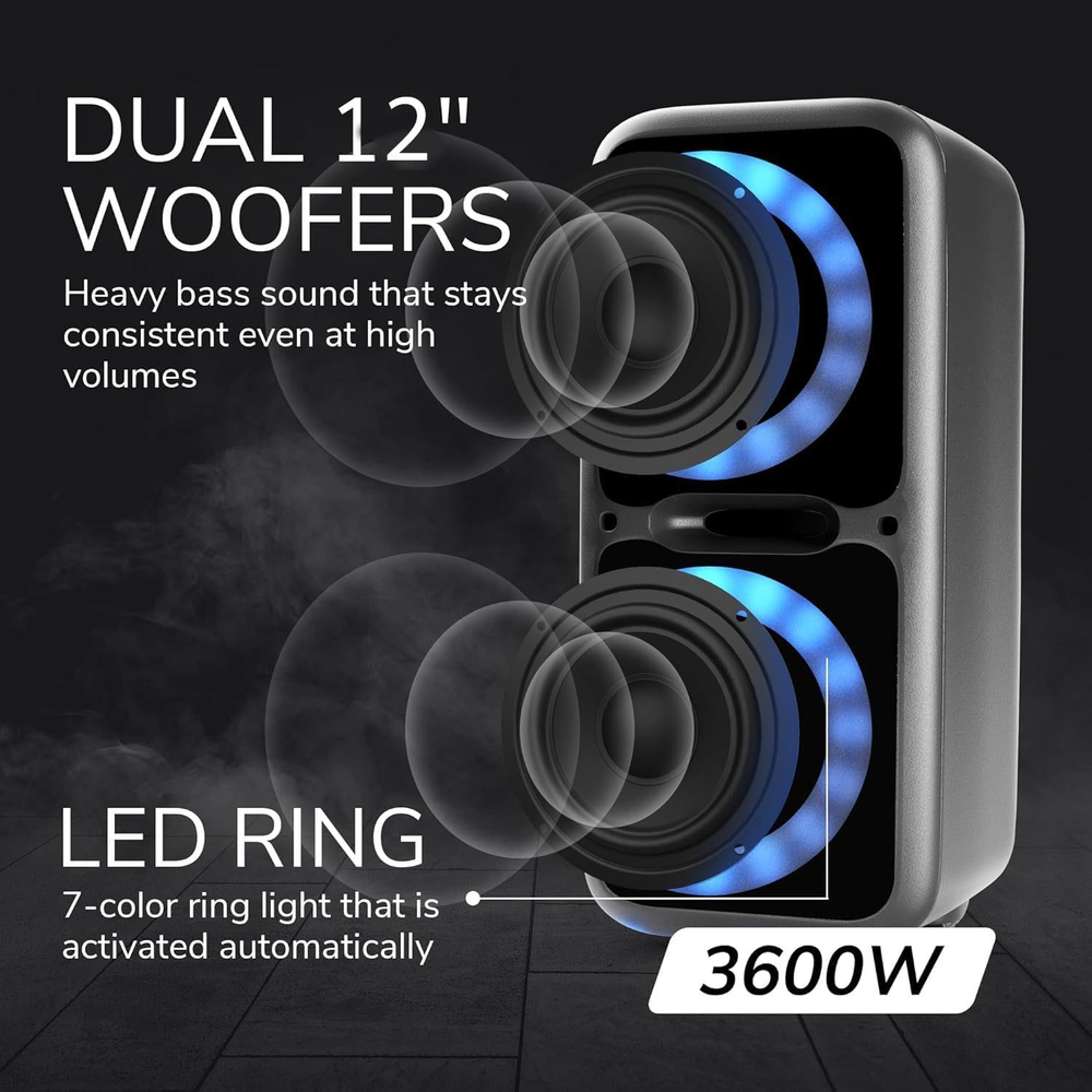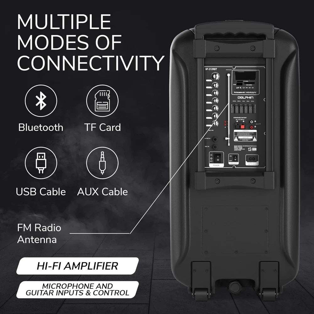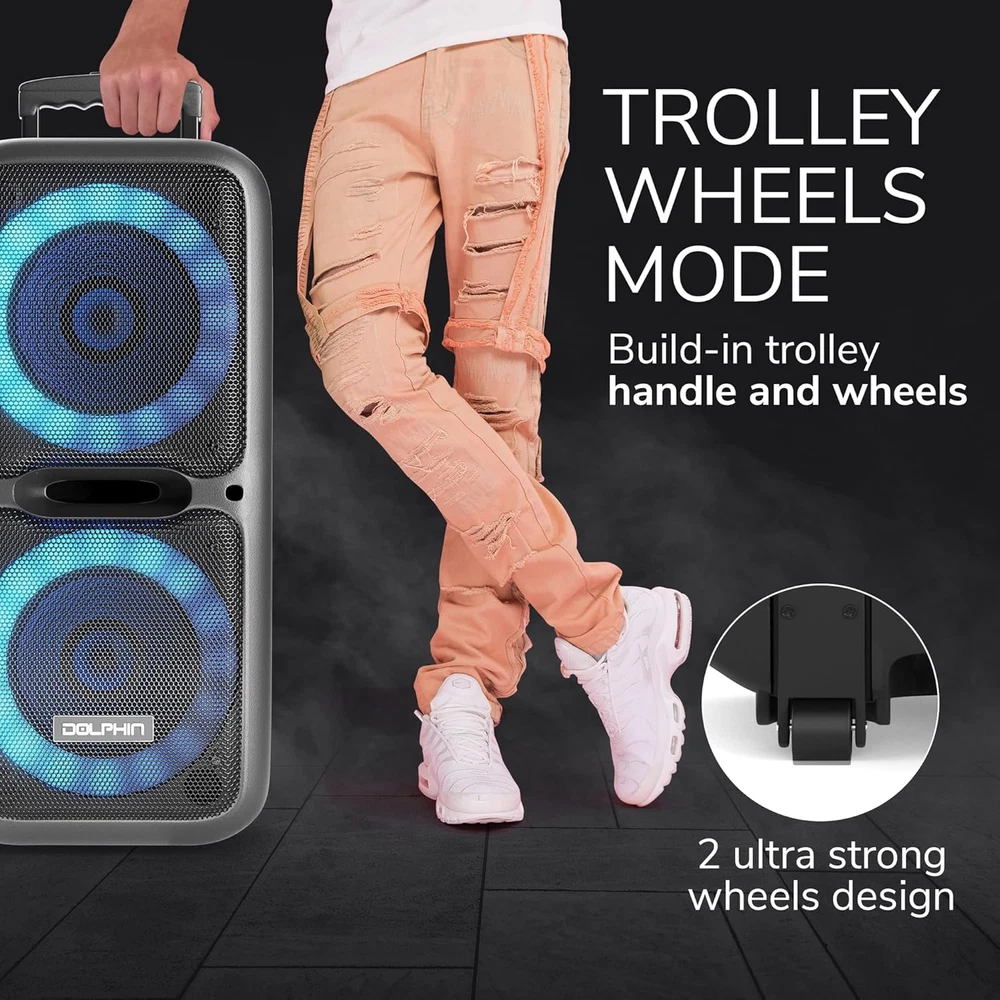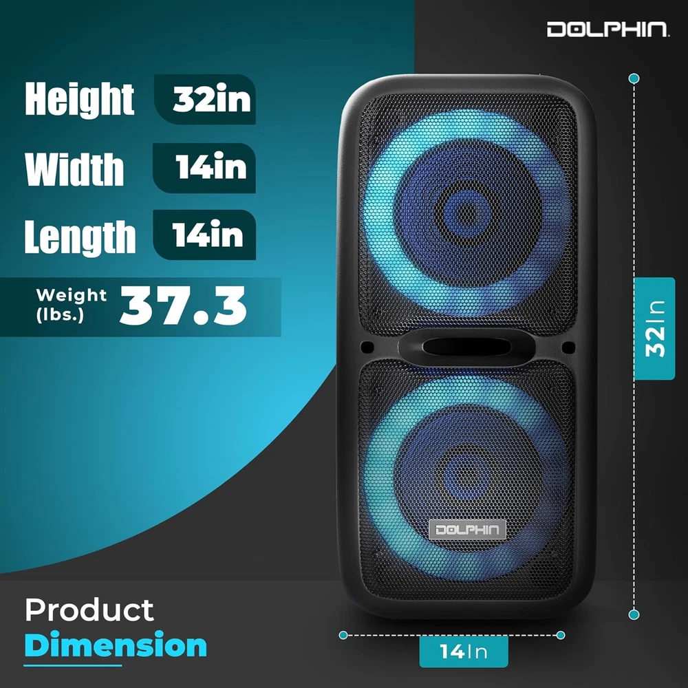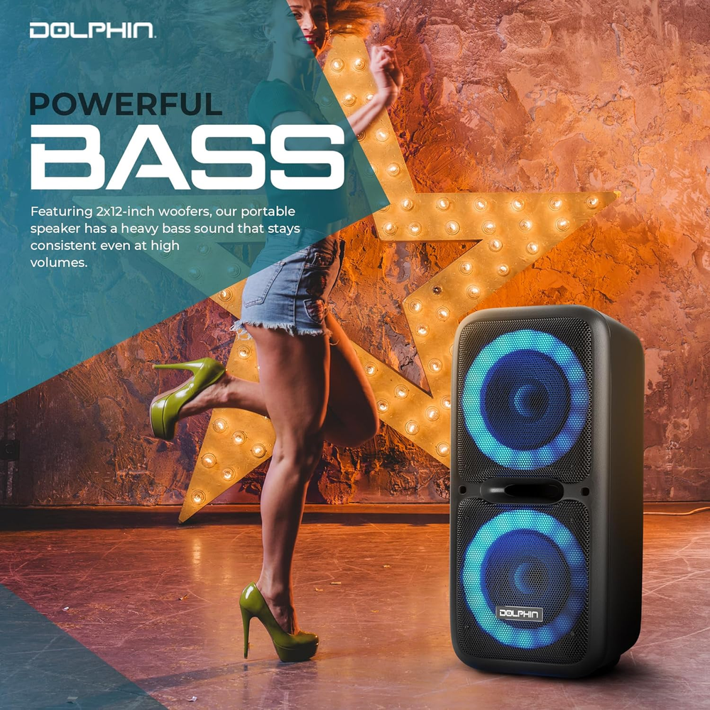 Store New Arrivals Add to Favorite View Feedback Contact Boxparty 2120 Dual 12" Party Speakers - Portable & Rechargeable Sound with Microphone, Bluetooth, USB, Hi-Fi Amp, Powerful Bass, 5-Band Equalizer & LED Lights - Long Battery Life - 2X12-Inch Description Item model number SP-2120RBT Item dimensions L x W x H 14 x 14 x 32 inches Mounting Type Plug Mount,Freestanding Power Source Corded Electric Color Black Product Dimensions 14 x 14 x 32 inches Material Metal Connector Type RCA Compatible Devices Guitar Item Weight 36 pounds Connectivity Technology Bluetooth Number of Channels 2 Audio Input 1/4" Microphones, Guitars Recommended Uses For Product Indoor/Outdoor Output Wattage 3600 Watts Batteries 1 12V batteries required. (included) Impedance 4 Ohm Manufacturer Audio π Dynamic Sound Quality: Equipped with dual 12-inch woofers and a Hi-Fi amplifier, the Dolphin SP-2120RBT delivers crystal-clear, powerful sound with deep, resonant bass. Experience the richness of your music, whether indoors or outdoors. π Versatile Connectivity Options: Seamlessly connect via Bluetooth for wireless streaming, use the USB port for MP3 playback, or plug in with the auxiliary input. A built-in microphone input allows for karaoke or announcements, making it perfect for parties, events, and gatherings. π Customizable Audio Experience: Fine-tune your audio with a 5-band equalizer to match any genre of music. From jazz to pop, control bass, treble, and mids to create the perfect sound ambiance for your event. π LED Party Light Show: Transform any space into a concert-like atmosphere with vibrant LED lights that sync to the beat of your music. The SP-2120RBT turns any gathering into a memorable event with its captivating visual display. π Extended Battery Life for Uninterrupted Play: Enjoy hours of continuous music thanks to the speaker's long-lasting rechargeable battery. Perfect for outdoor parties, beach outings, and all-day events without the worry of finding a power outlet. Product Description 1 Long Battery Life 2 Double Power 3 Multiple Lights 4 12V Lead-Acid Battery ABOUT US We offer the best prices around on high quality products. Our E-store includes media such as books, movies, music and games while offering electronics, toys, sporting apparel, clothing, tools, general home, garden items and more. SHIPPING We are always working hard to ensure your package arrives as soon as possible. Please understand that some factors like weather, high postal traffic, and the performance of shipping companies are outside of our control. We offer free shipping to the lower 48 states and ship within 2 business days of payment, usually sooner. We do not accept P.O. Boxes. Please provide a physical address. For shipping outside of the continental USA, we only use eBay's Global Shipping Program.The item is shipped to KY and then sent to the rest of the world. International customers are responsible for all duties and taxes. Continue to check out in order to calculate costs for shipping the item to your country. Messages regarding eBay's Global Shipping Program MUST be directed at eBay EXCLUSIVELY. RETURNS We offer a 30-Day Return Policy on items which you are not completely satisfied with. You have the option for a full-refund or an exchange of the item. No returns are available on items shipped outside of the USA. PAYMENT We accept PayPal. CONTACT US This page content is yet to come Please ad us to your favorite seller and visit again later Thank You CUSTOMER SATISFACTION We try our very best to make sure every customer is completely satisfied. If there's a problem, message us! We're happy to help. WE ACCEPT Copyright Β© 2021 AutoDS. | All Rights Reserved