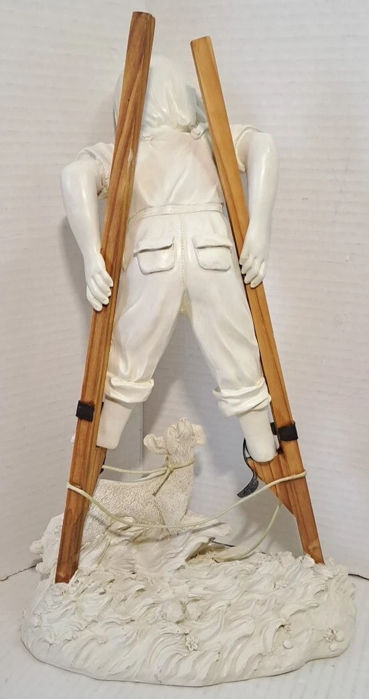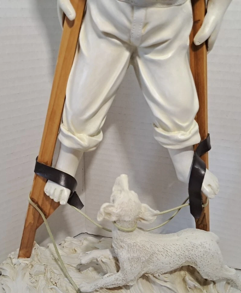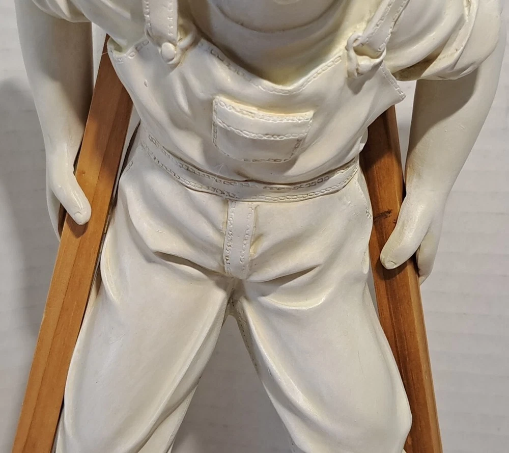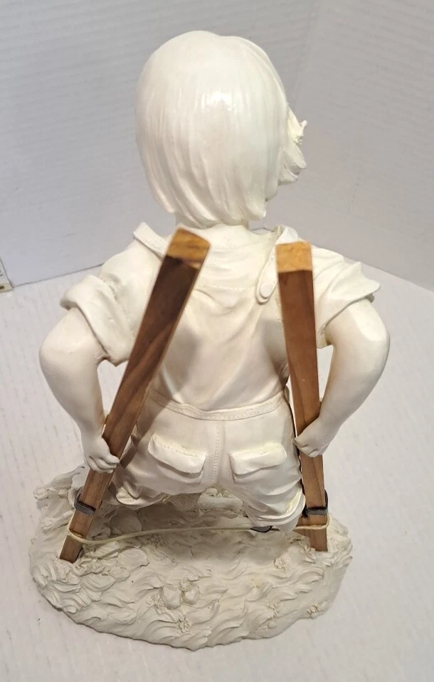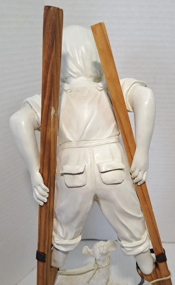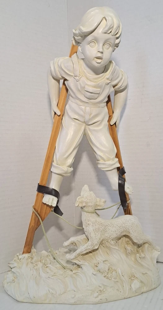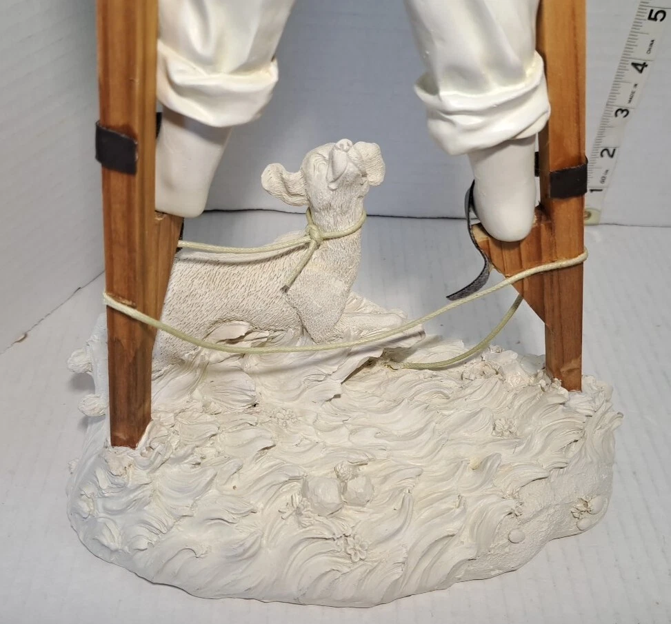 Child Playing Puppy Figure Boy On Stilts With Dog Statue See photos for measurements I believe this a molded resin I consider this to be in good preowned condition Please view all photos zooming in on them as they are part of the description for you to judge condition This is a heavier item so shipping cost reflects this