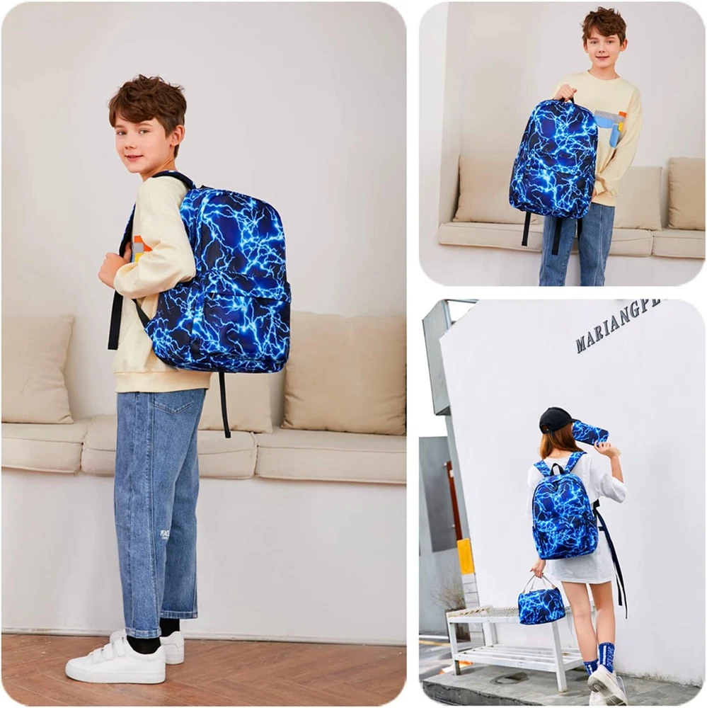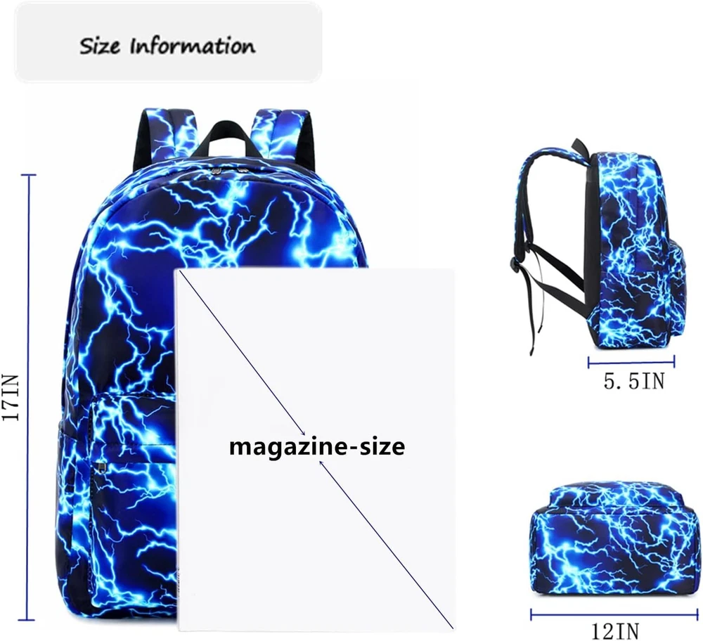Boy School Backpack Elementary Middle Lightning Bookbag Laptop 1-blue Product Details 1. Lightweight Kids Backpack: This Kids School Bag Is Available In Blue For Men And Women, Black For Boys And Pink For Girls, Suitable For Children Over 7 Years Old And Teenager, Size 43x30x14 Cm (17x12x5.5 Inches). 2. High Quality Laptop Backpack: Unlike Most Brands, This Galaxy Backpack Is Made Of High-Grade Nylon Material, Which Is Waterproof, Scratch-Resistant And Wear-Resistant. Branded Sbs Zippers, Strong Double Stitched Seams, Triangular Stitched Reinforced Shoulder Straps, We Have A Padded Bottom, Reinforced Back Panel And Sturdy Inner Laptop Sleeve For All-Around Protection For Your Tech. 3. High Volume Backpack: Holds All Of Your Essentials And More, Not Only Provides You With Plenty Of Space To Pack All Of Your Laptop, Binders, As Well As Pack Your Book, Cloth, Chargers, Water Bottles, Pens, Highlighters, Or Other Small Stuffs You Daily Needs. 4. Multifunctional School Bag: This Backpack Can Be Used As A Travel Bag, Work Backpack, Weekend Party Bag, Suitable For People Of All Stages. Also Suitable For Travel, Camping, Hiking, Picnics, Summer/Winter Camps And Other Outdoor Sports. Also Makes The Perfect Gift For Younger Generations Or Friends. 5. Our Backpack Lightning Pattern Is A Fabric Soaking Process, My Child Has Been Using This Bag For Two Years, No Fading, No Wrinkles, Each Lightning Pattern Is Different, The Same Batch Of Backpacks Only Have The Same Style But Not The Same, Avoid The Same Style,Please Trust Your Choice.