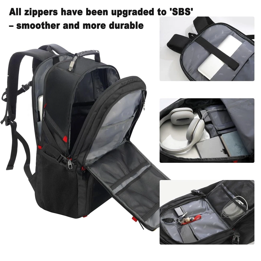 【DEFORMATION DESIGN】New upgrades! All zippers have been upgraded to SBS zippers for smoother and more durable. When you store shoes or clothes on shoes compartment, main compartment area will be reduced to provide more space for shoes compartment. When you don't need to carry shoes, the bottom pocket can be folded so that you can carry more items in main pocket. A combination of shoes bag and laptop backpack. You must not miss this 2023 NEW backpack! 【LARGE CAPACITY】40L maximum capacity, the backpack with schuhfach features independent laptop compartment with Five-layer protective sponge for 17.3in laptops, 1 main compartment for books,A4 folders and clothes. 2 front pockets for your daily supplies, 2 side pockets for umbrella or water bottle. It is convenient for a variety of applications, suitable for outdoor sports, weekend trips, work backpacks, school bags. 【TRAVEL FRIENDLY DESIGN】The laptop backpack combines all convenient features for outdoor activity and travel. External USB CHARGING PORT convenience to charge your electronic devices while walking. LUGGAGE STRAPS allow you to attach to a luggage case and slide along with it. ANTI-THEFT POCKET on the back for your valuables. Perfect partner for business trip and traveling 【ADDITIONAL FEATURES】Side pockets have a buckle strap to protect the longer items. Shoulder straps have reflective strips. Chest strap to help you carry heavey without back pain. There is a hook in the front pocket, you can hang items that can be taken and put at any time 【DURABLE & COMFORTABLE】The large backpack is made of durable and water-resistant fabric which will not rip, tear or scratch but also lightweight. Breathable mesh pads on shoulder straps make it convenient to carry for long duration. It's the best Brithday, Thanksgiving, Christmas and New Year gift idea for man, women, father, mother, boys, girls, teens, etc. Age: above 3 years old