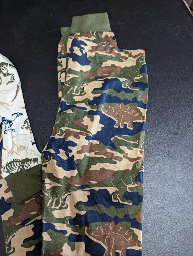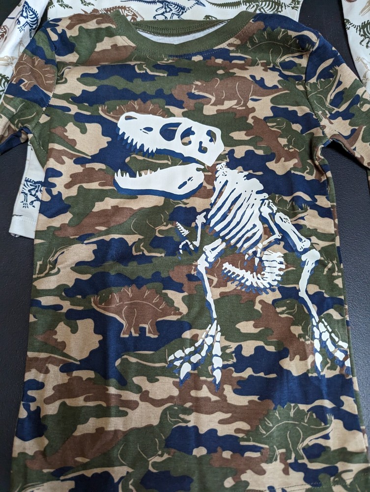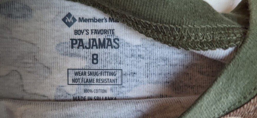 Add some fun to your little boy's pajama collection with this two-piece set from Member's Mark. Featuring a brown camouflage pattern and long-sleeved, crew neck top with an adorable dinosaur theme, this pajama set is perfect for all seasons. The pullover closure ensures easy dressing and the 100% cotton material makes it machine washable for effortless care. The pajama top, part of the Member's Mark Boys Favorite Pajamas collection, is paired with a matching brown camo bottom for a complete look. Available in size 8, this two-piece set is perfect for boys who love dinosaurs and want to stay comfortable all night long. Get ready for cozy nights with this trendy and comfortable pajama set!