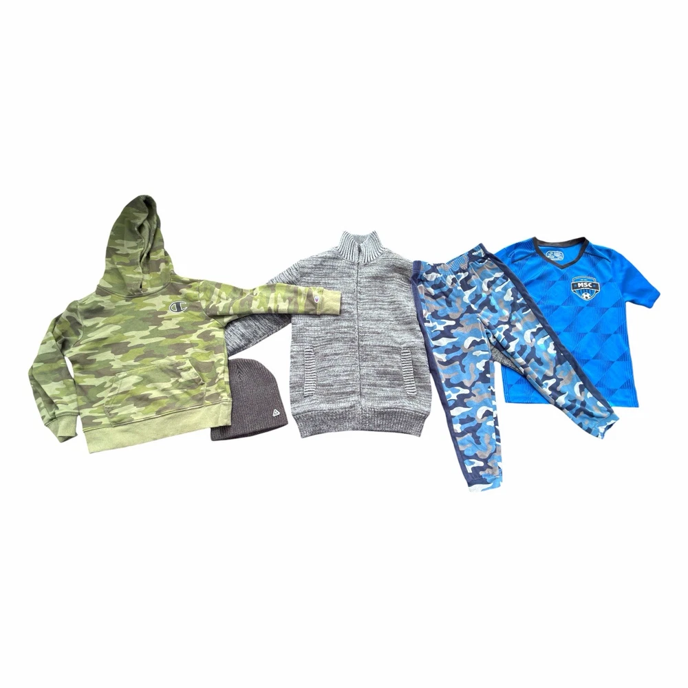 Large boys’ clothing bundle featuring 18 total pieces in mixed sizes ranging from 5/6, 7/8, big kid, and youth/teen. This lot includes a versatile mix of hoodies, long-sleeve tops, athletic shirts, pants, and a hat, perfect for everyday wear, school, play, or layering. A variety of popular and recognizable brands are included (see photos for brand tags and details). Styles range from athletic and graphic tees to cozy hoodies and casual basics. ⸻ What’s Included ✔️ Hoodies & sweatshirts ✔️ Long-sleeve & short-sleeve tops ✔️ Pants / joggers ✔️ Hat ✔️ Mix of athletic & casual wear Total pieces: 18 Sizes: 5/6, 7/8, Big Kid, Youth/Teen (mixed lot) ⸻ Condition • Mixed condition bundle • Some items show light staining or signs of wear (normal for kids’ clothing) • Several pieces are in very good condition, and some are brand new with tags • No major damage noted (no rips or holes observed) Please review photos closely, as they are part of the description. ⸻ Perfect For • Budget-friendly wardrobe refresh • Resellers / bundle buyers • School & everyday play • Seasonal layering ⸻ Important Notes • Sold as a lot only (no splitting) • Items are pre-owned unless noted new with tags • Sold as-is • Smoke-free home