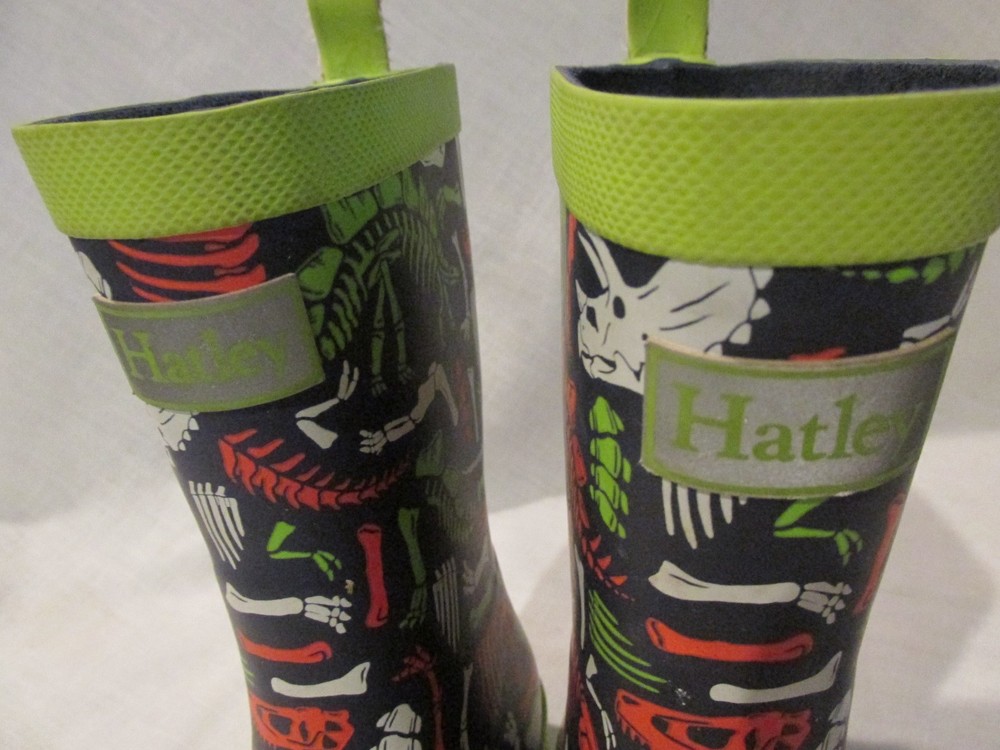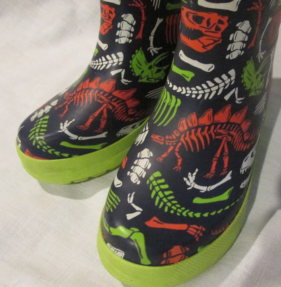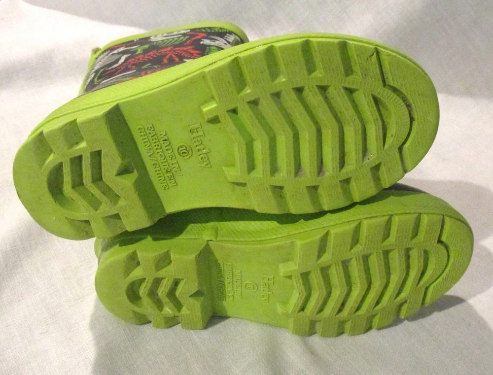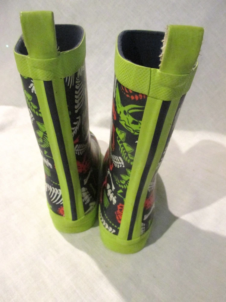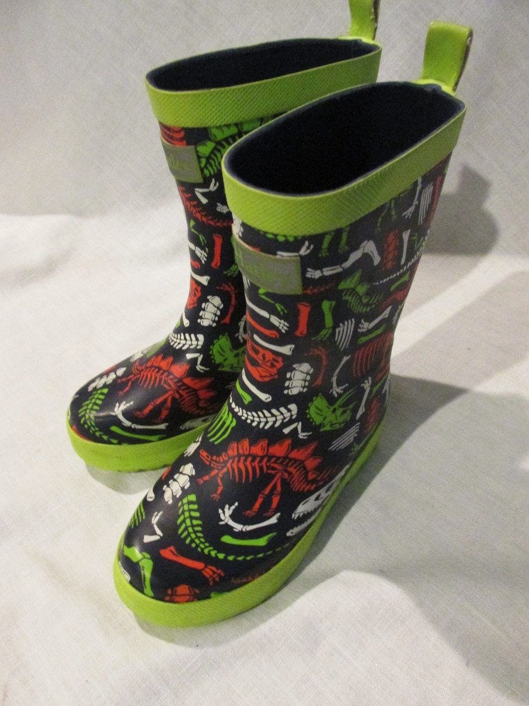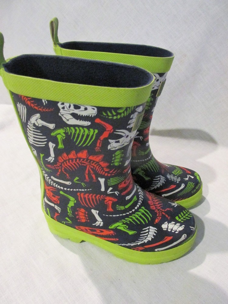 Boys Hately Dinosaur Rubber Rain Boots Size 10 Black Lime Green