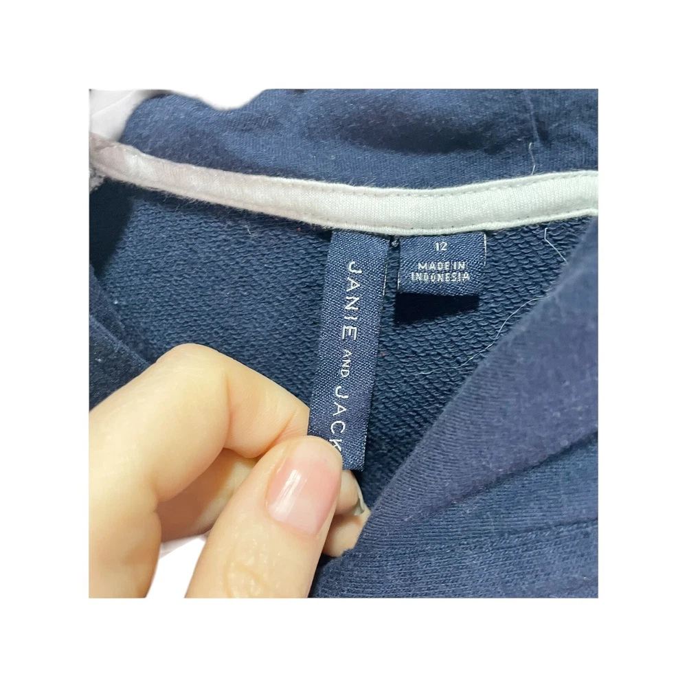 This is a Janie and Jack hooded sweatshirt for boys in size 12. It features a pullover style with a navy blue and gray color combination. The sweatshirt has a raglan design and is suitable for boys' casual wear. in very good condition All Measurements Are Approximate Please email us with any questions! ** LIKE THE ITEM BUT NOT THE PRICE, REASONABLE OFFERS ACCEPTED