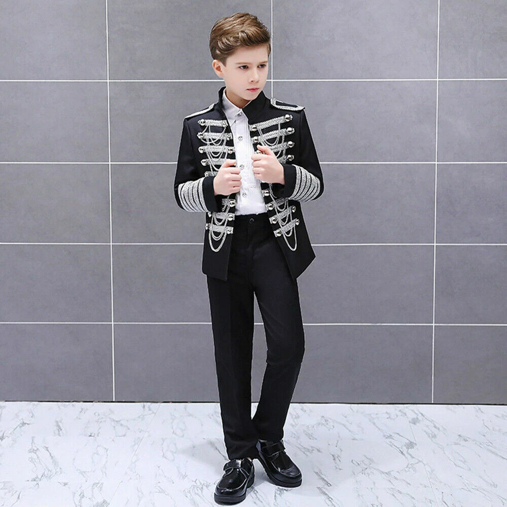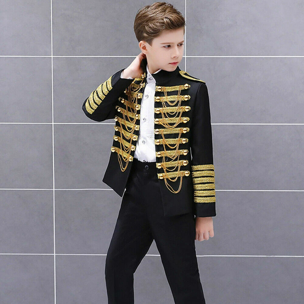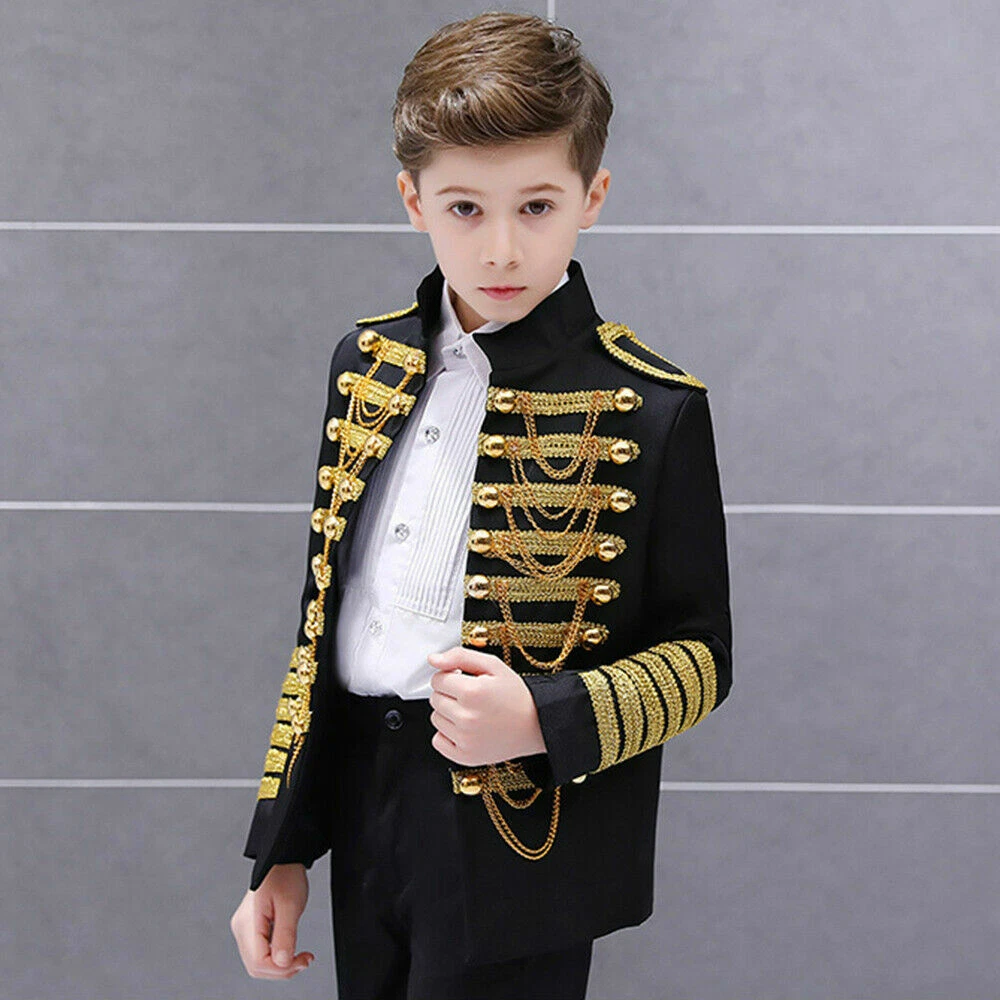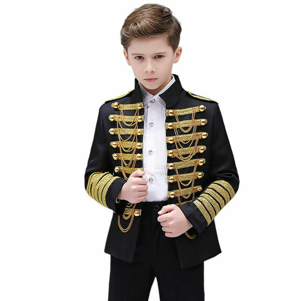 Boys Kids Children Hussar Suit Jacket Dance Show Costume Drummer Blazer Clothing