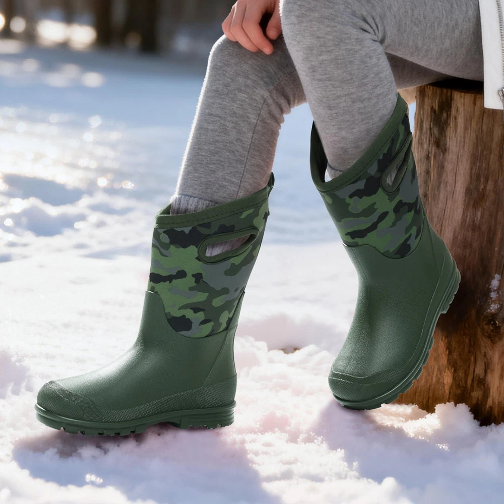 Season: Winter Closure: Pull On Type: Athletic Brand: Unbranded Occasion: Activewear Outsole Material: Polyvinyl Chloride US Shoe Size: 10 toddler-6 big kid Department: Unisex Kids Style: Rain Boot Features: Comfort, Lightweight, Insulated, Lined, Waterproof Performance/Activity: Hiking, Hunting, Riding Upper Material: Polyvinyl Chloride
