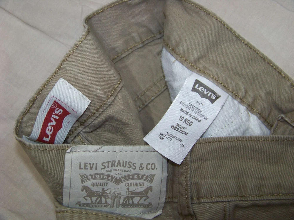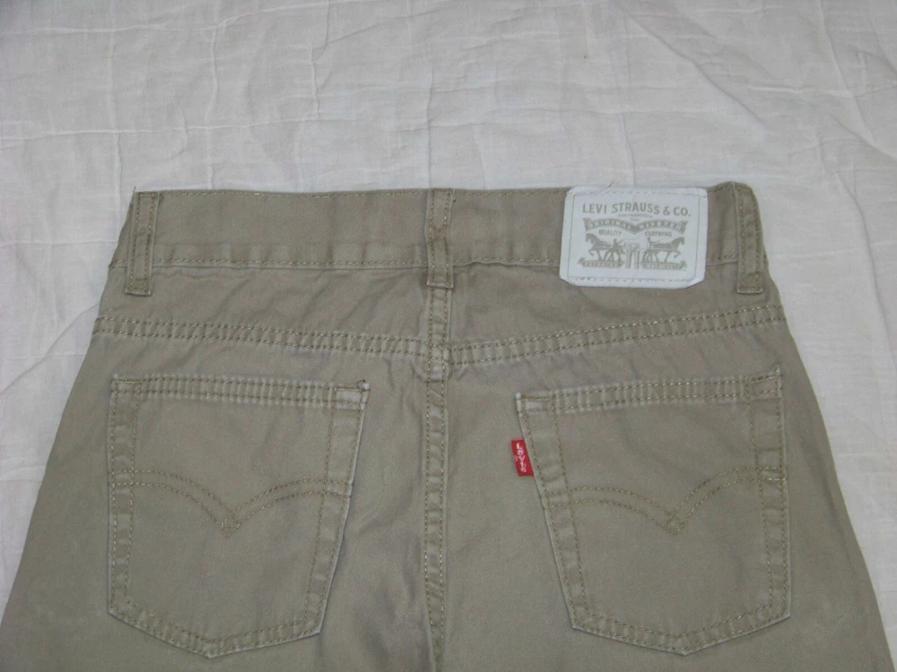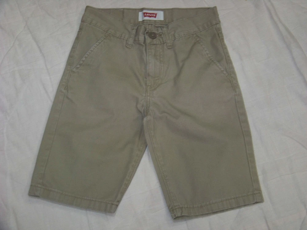 Boys Levi's 514 Khaki Shorts - Size 10 Reg - they are in very good condition, no spots or stains or tears...they show little wear. 100% cotton...The waist (top of shorts) measures 26 - 1/2"...the front rise is 8 - 3/4"... and the inseam is 9". Nice shorts...they come from a smoke free and pet free home. 18#0224-241