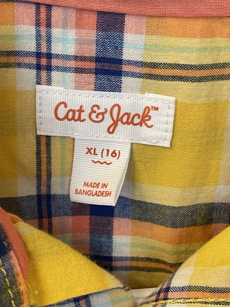 Excellent condition, Boys Size XL 16. Yellow plaid dress shirt, long sleeve, button down, one pocket. Cat & Jack.