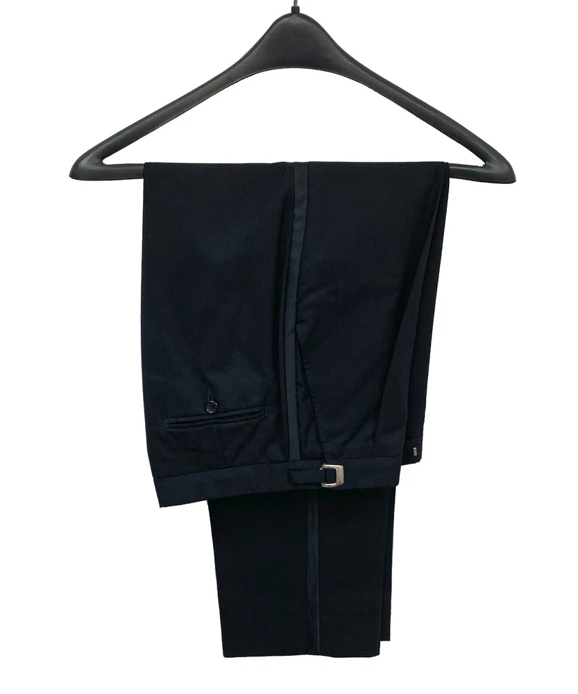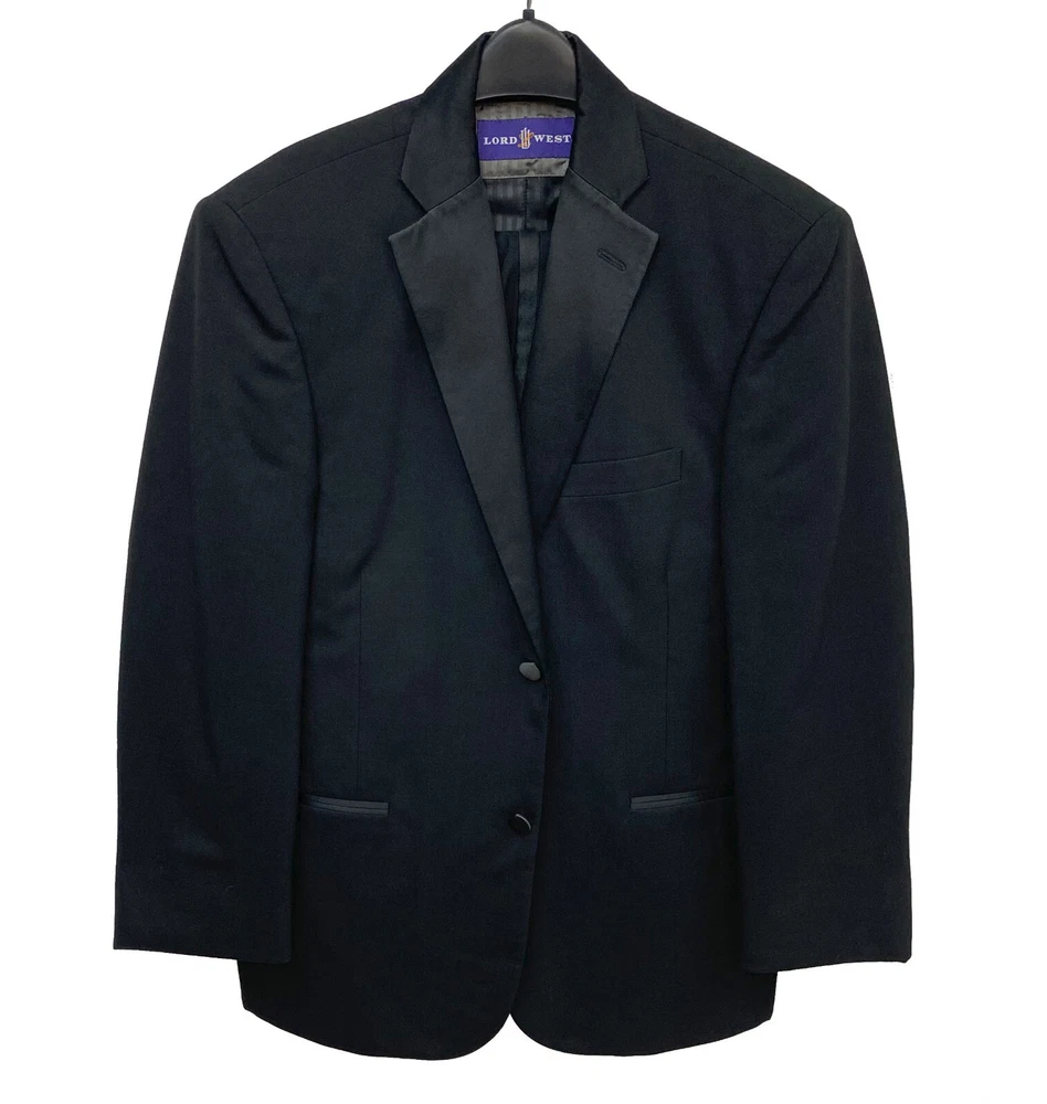 Black Lord West Tuxedo Jacket with Pants Upgrade your formal wardrobe with this high-quality wool tuxedo! Material: Crafted from superior 100% wool for exceptional quality and durability—much better than cheap polyester. Condition: In great shape, ideal for any formal event. Shipping: In stock and ready to ship—no long wait times from overseas! Features: Standard fit will fit true to size Classic satin notch lapel 2-button single-breasted closure Non-vented in back Matching pleated front pants with a satin tuxedo stripe Adjustable waist for a comfortable fit Note: This purchase includes the jacket and pants only!