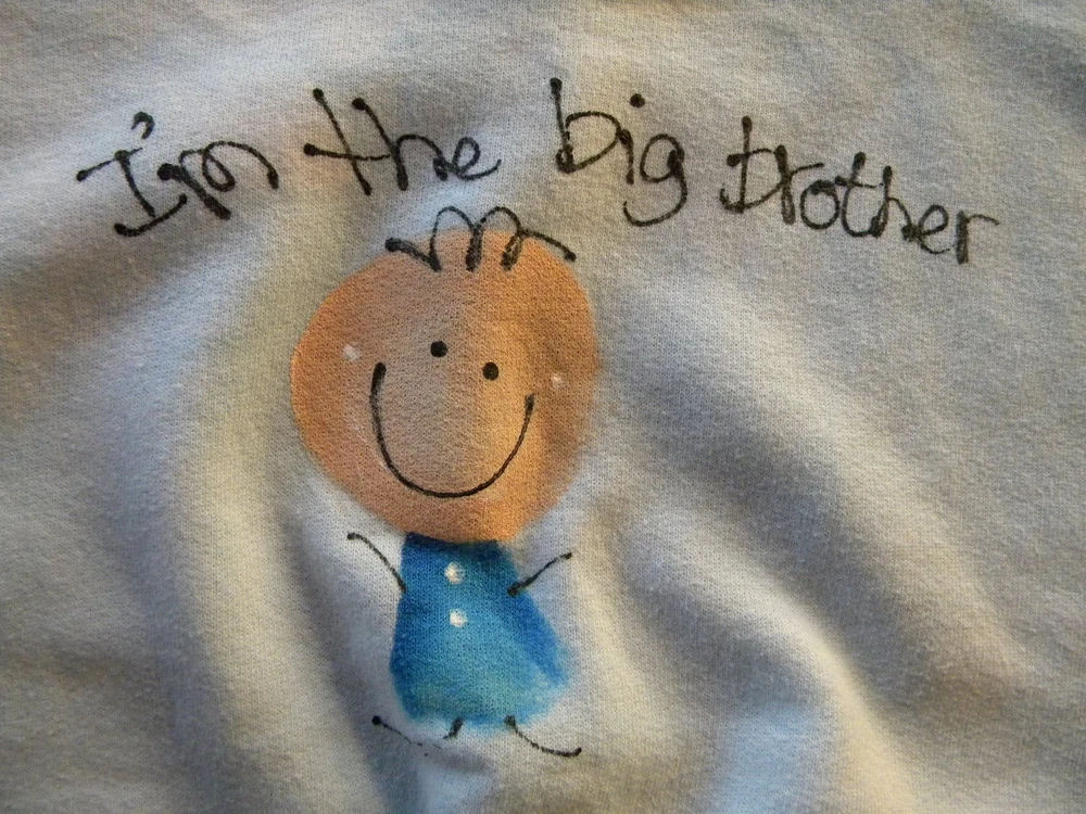 A Hanes sweatshirt for the Big Brother in your family. Tag says size 2-4 but runs large so more likely to fit a 3-4 yr. old. Measures 14 inches pit to pit and 17 inches long. " I'm the big brother" on the front. Very light blue and white with a tie dyed effect. No flaws. Comes from a smoke free home. Visit my store for other boy items....I will gladly combine shipping on multiple items when it saves you money! Just notify me before you pay.