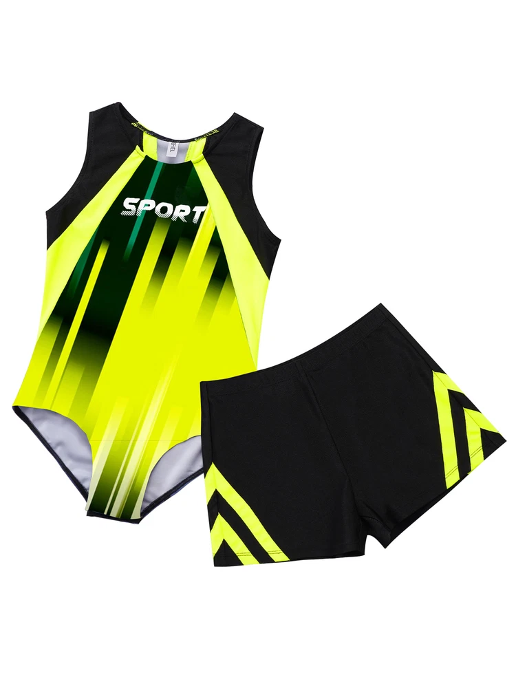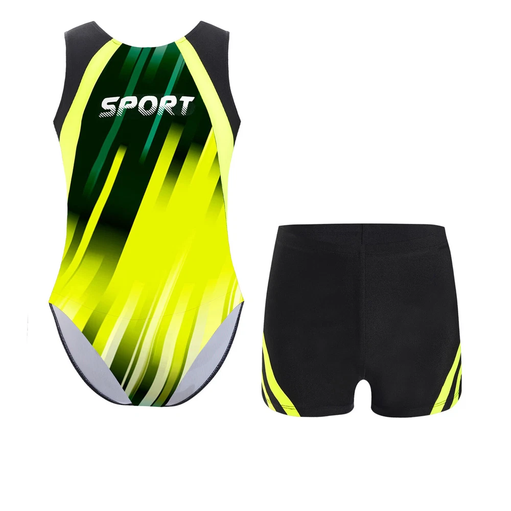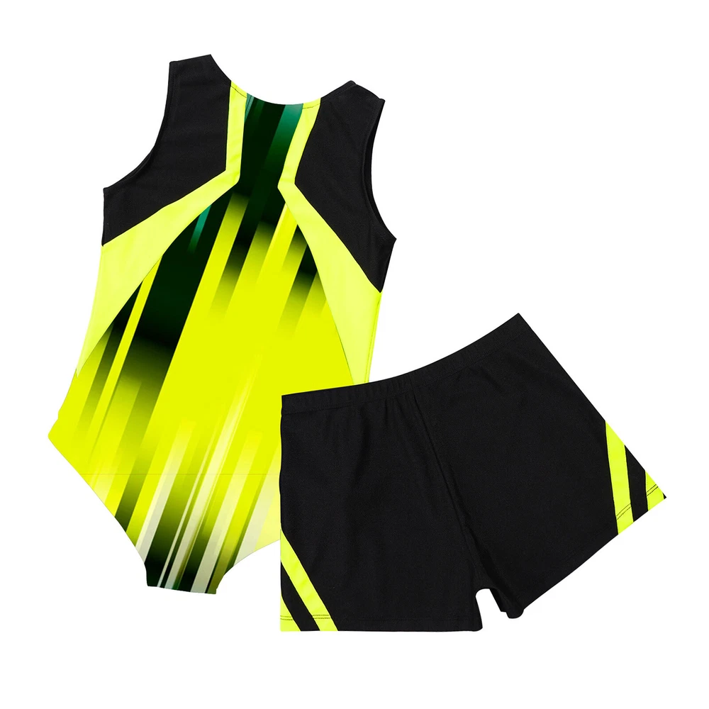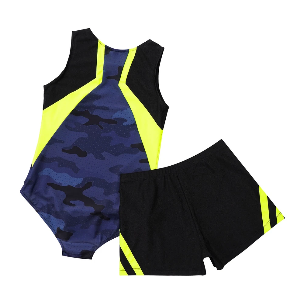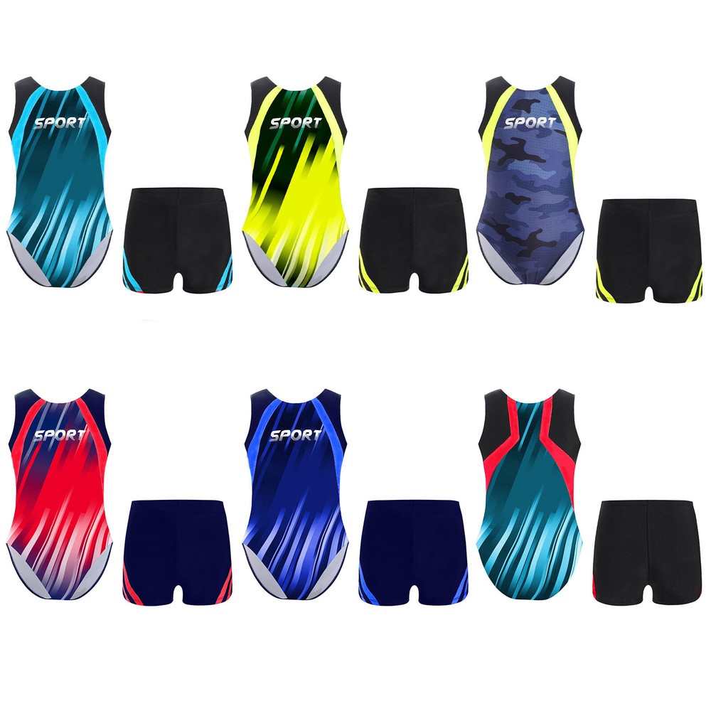 Boys Suit Training Set Color Block Outfits Workout Leotard With Shorts 2 Piece
