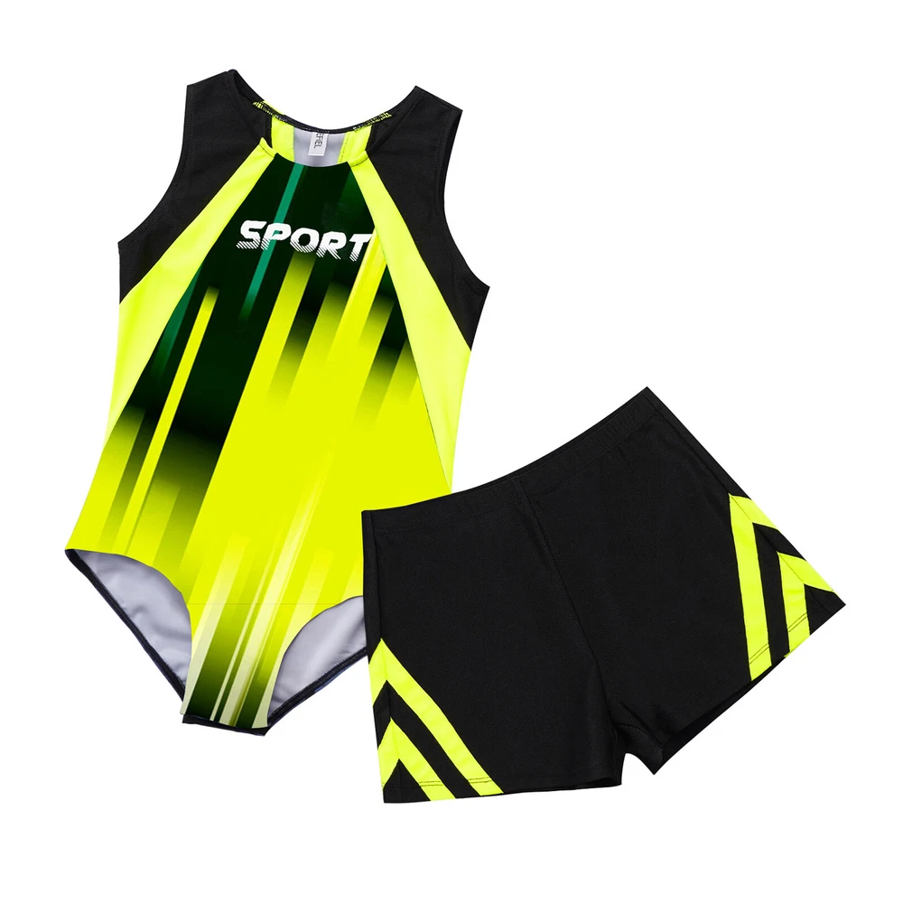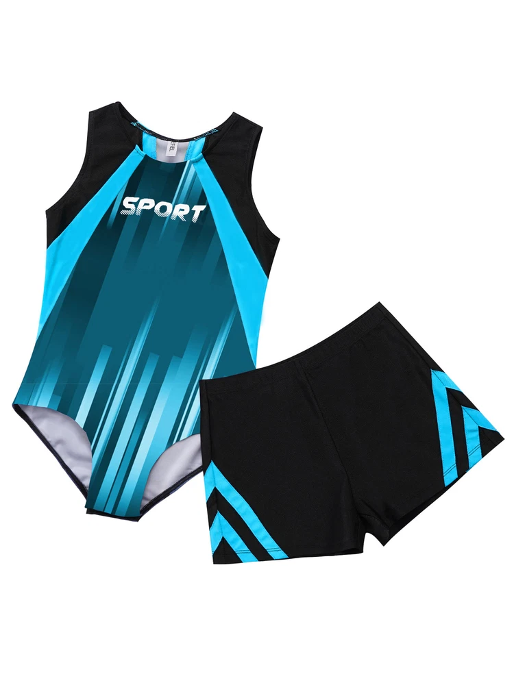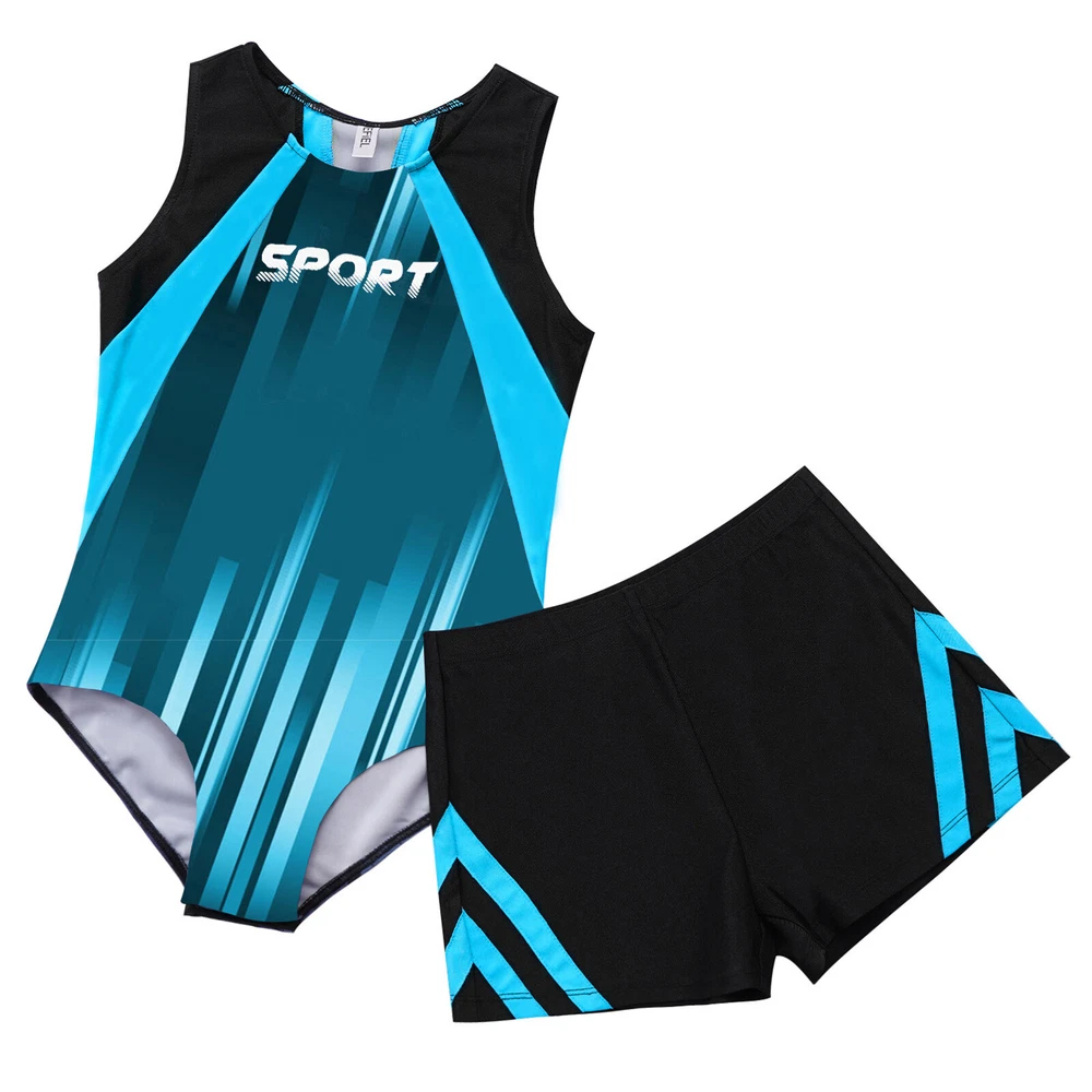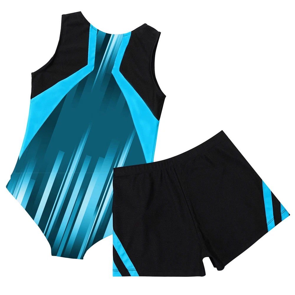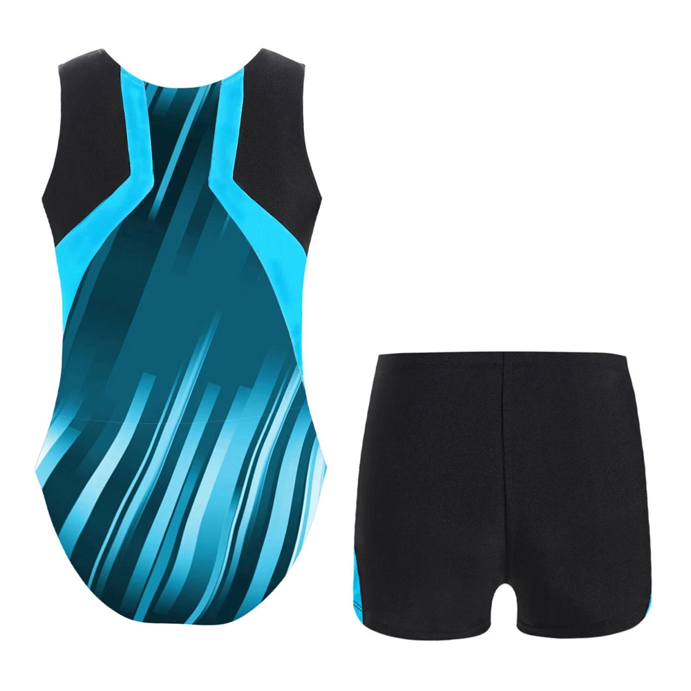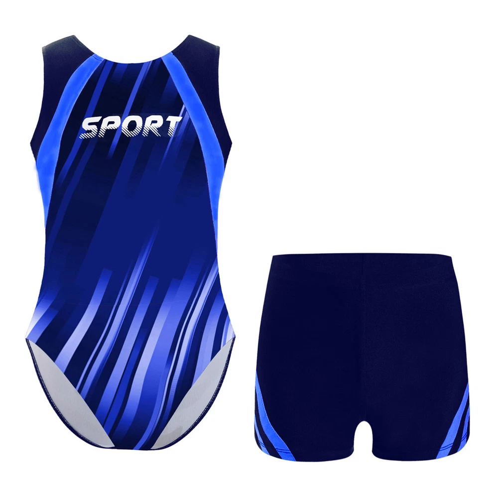 Boys Suit Training Set Color Block Outfits Workout Leotard With Shorts 2 Piece