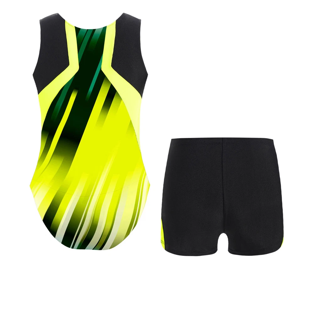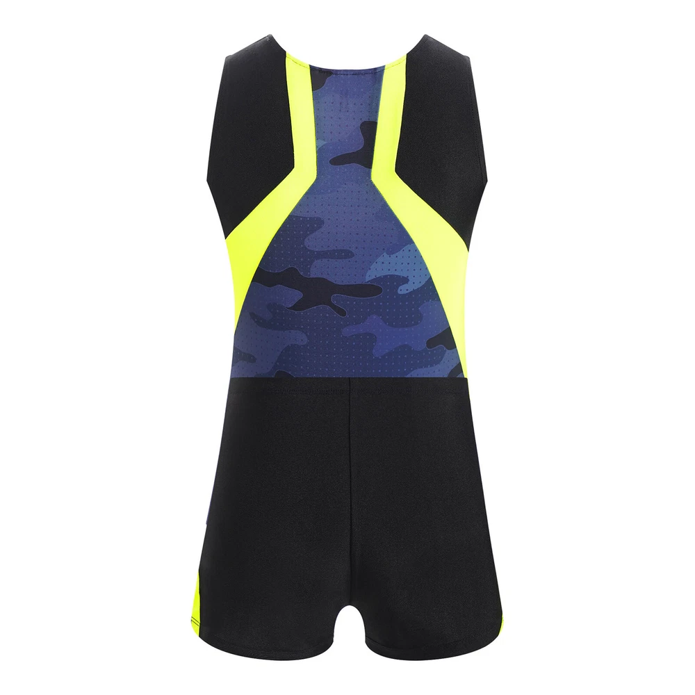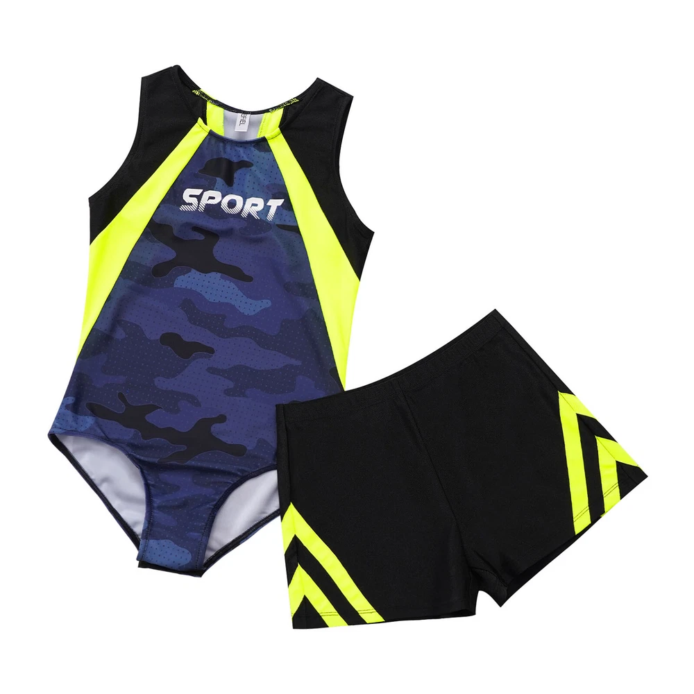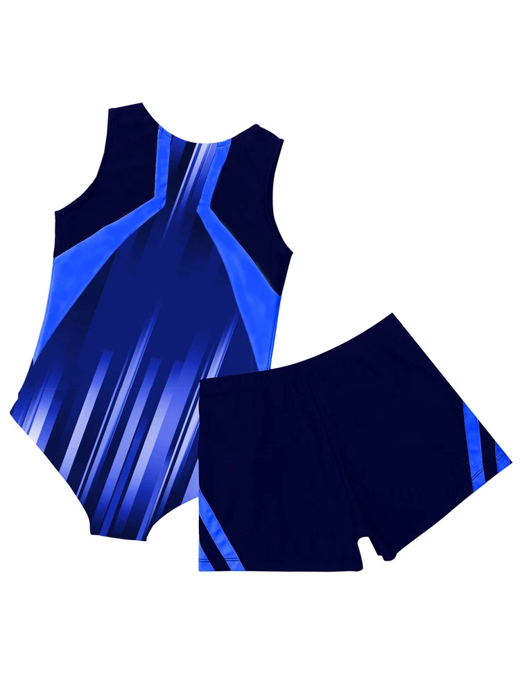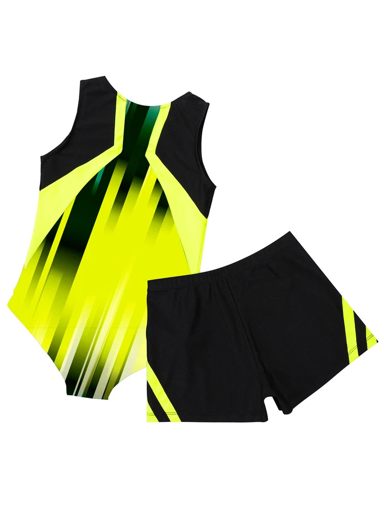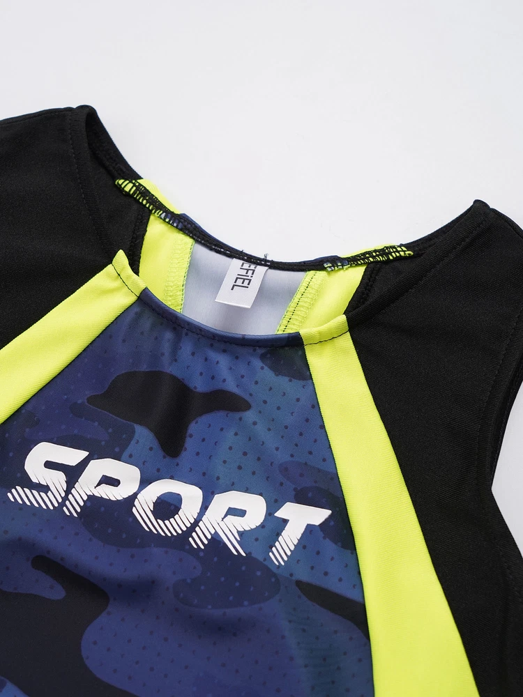 Boys Suit Training Set Color Block Outfits Workout Leotard With Shorts 2 Piece
