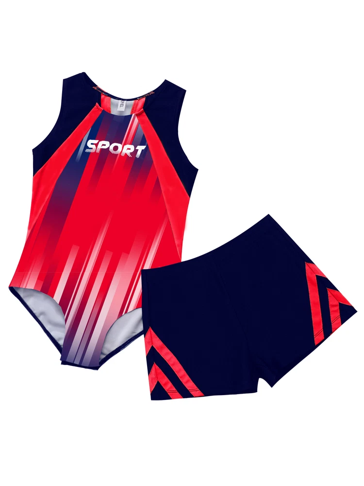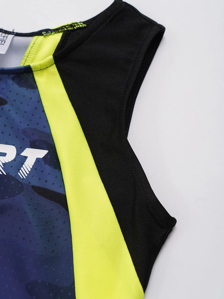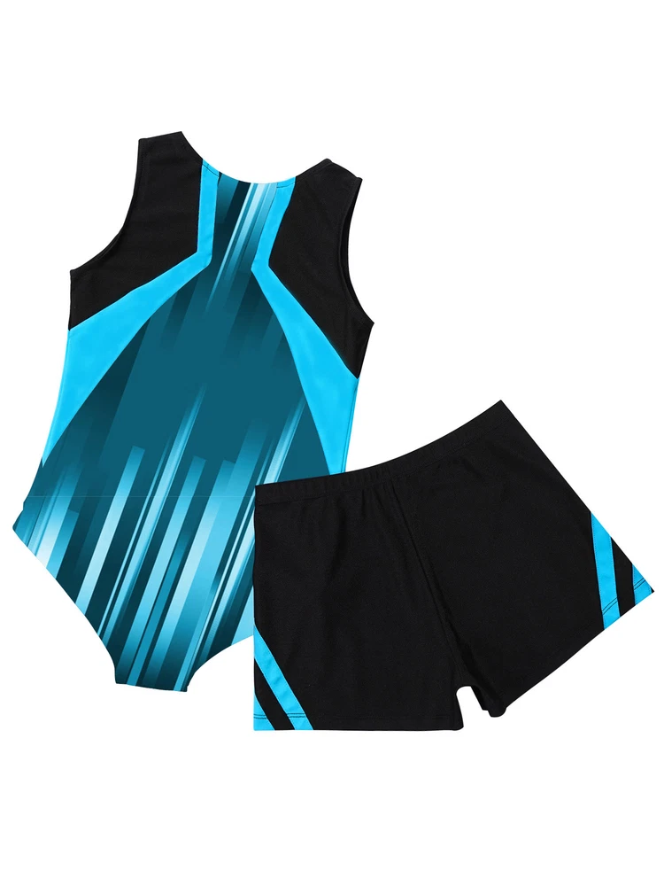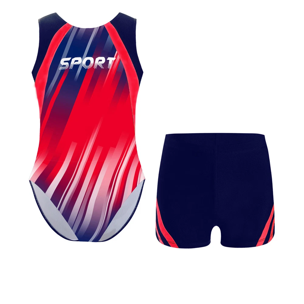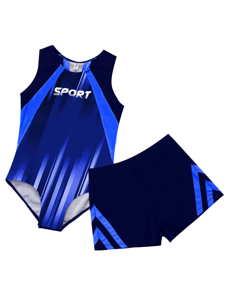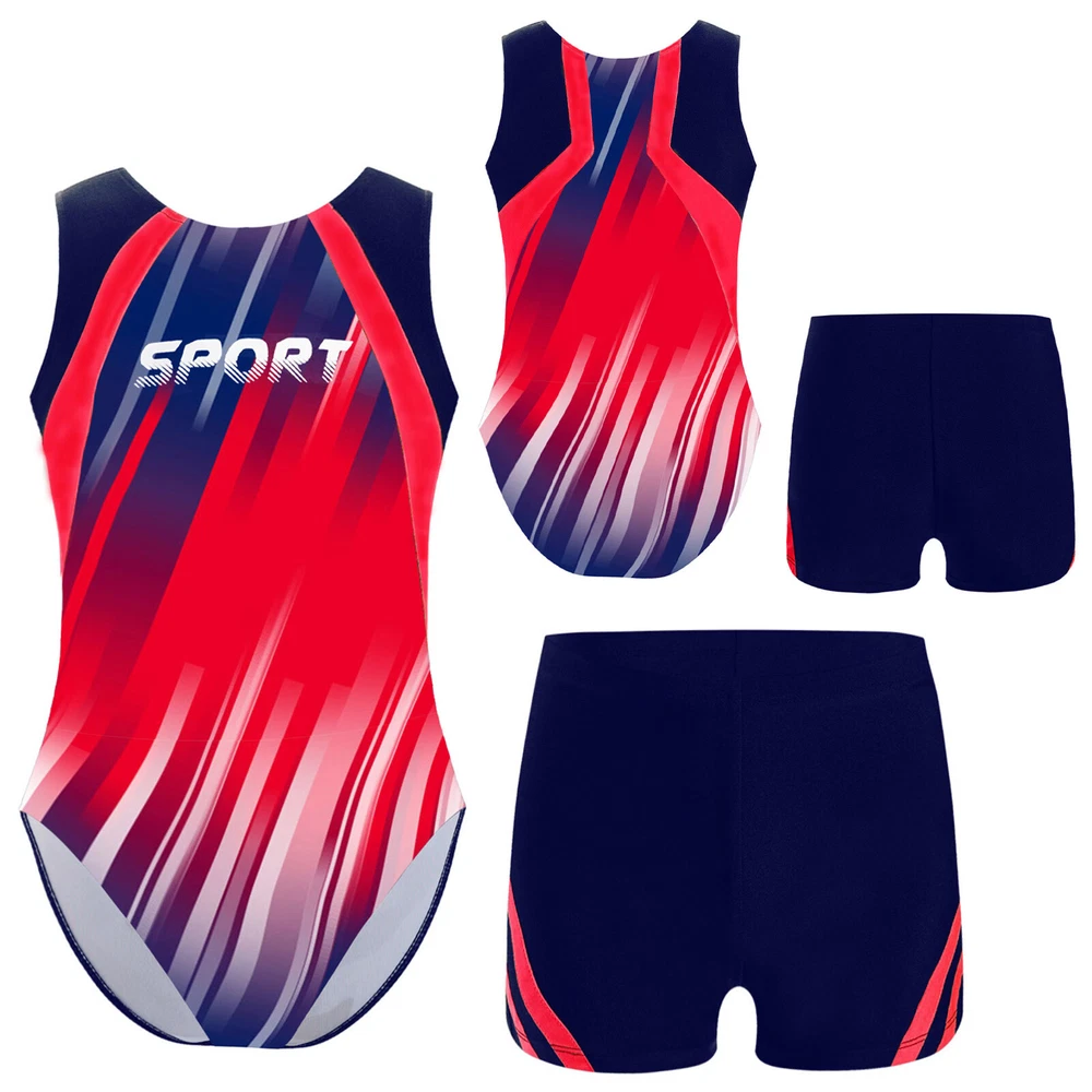 Boys Suit Training Set Color Block Outfits Workout Leotard With Shorts 2 Piece