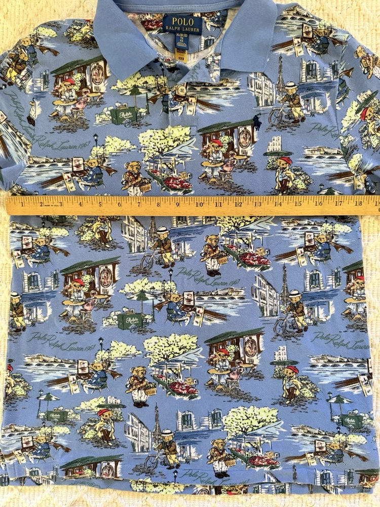 Boy’s XL Polo Ralph Lauren Bear In Paris Blue Polo Shirt. Condition is Pre-owned - Excellent. Shipped with USPS Ground Advantage.