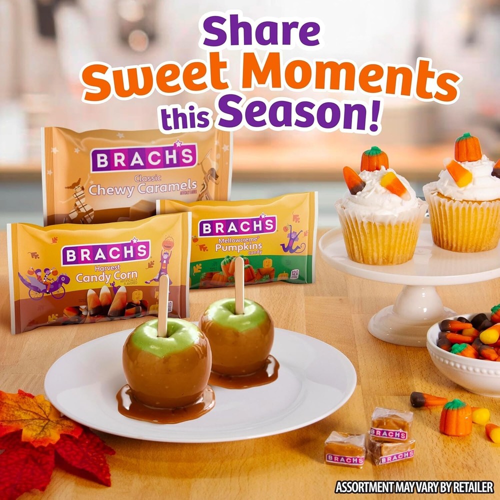About this item FALL IN LOVE WITH A CLASSIC: Brach's Classic Chewy Caramels have that essential fall flavor that will make you dream of caramel apples and decadent coffee shop lattes PERFECTLY SWEET AND RICH: Chewy, rich and creamy, these decadent caramels are sure to be a family staple for at-home sweet snacks or to give away for Trick-or-Treating INDIVIDUALLY WRAPPED: To keep each dreamy, soft caramel fresh, every chewy caramel is individually wrapped ADD TO YOUR BAKING: Get creative with delicious flavors this autumn season. Perfect for any caramel apple recipe, or grab some pretzels and use to decorate any fall treats READY TO SHARE: Perfect for sharing with family and friends at any fall get-together, these caramels are great treats for apple picking, family dinners, and more