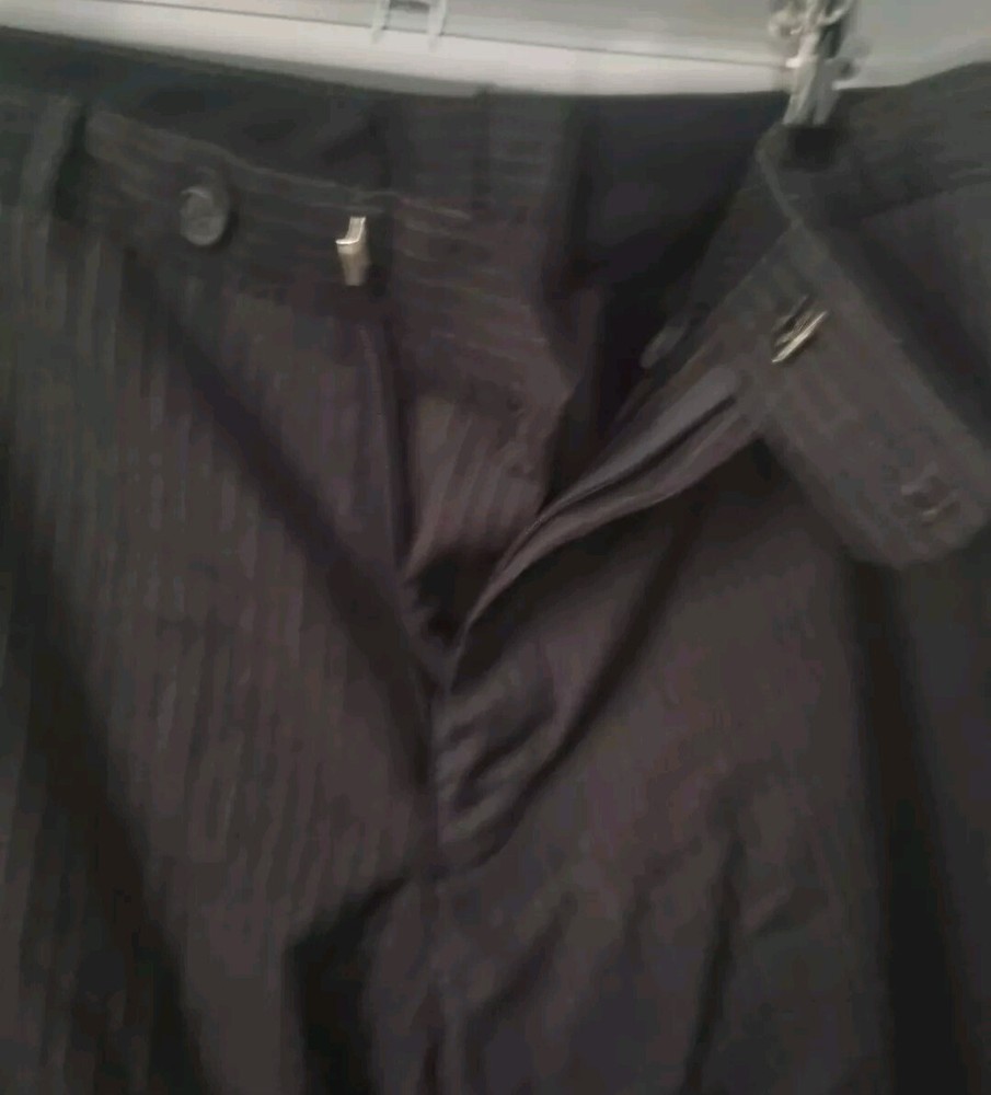 Crafted for the modern gentleman, these Bracks men's dress pants in a classic black pinstripe are a versatile addition to any wardrobe. Sized at 62R with a high-rise fit, they offer both comfort and a sharp, tailored look for various occasions, from business meetings to weddings. The cotton material ensures breathability and ease of care, while the multiple pockets, including two back pockets and a slash pocket, provide practical storage. The pants feature a flat front design, zip, button, and hook & loop closure for a smooth finish, and are machine washable for convenience. With features such as belt loops and lightweight fabric, these pants are both functional and stylish, suitable for wear across seasons from winter to spring.