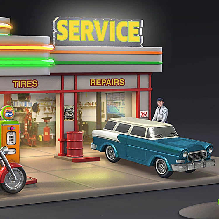 Bradford Exchange 1950s Retro Gas Station Lights Up With Display Options NEW