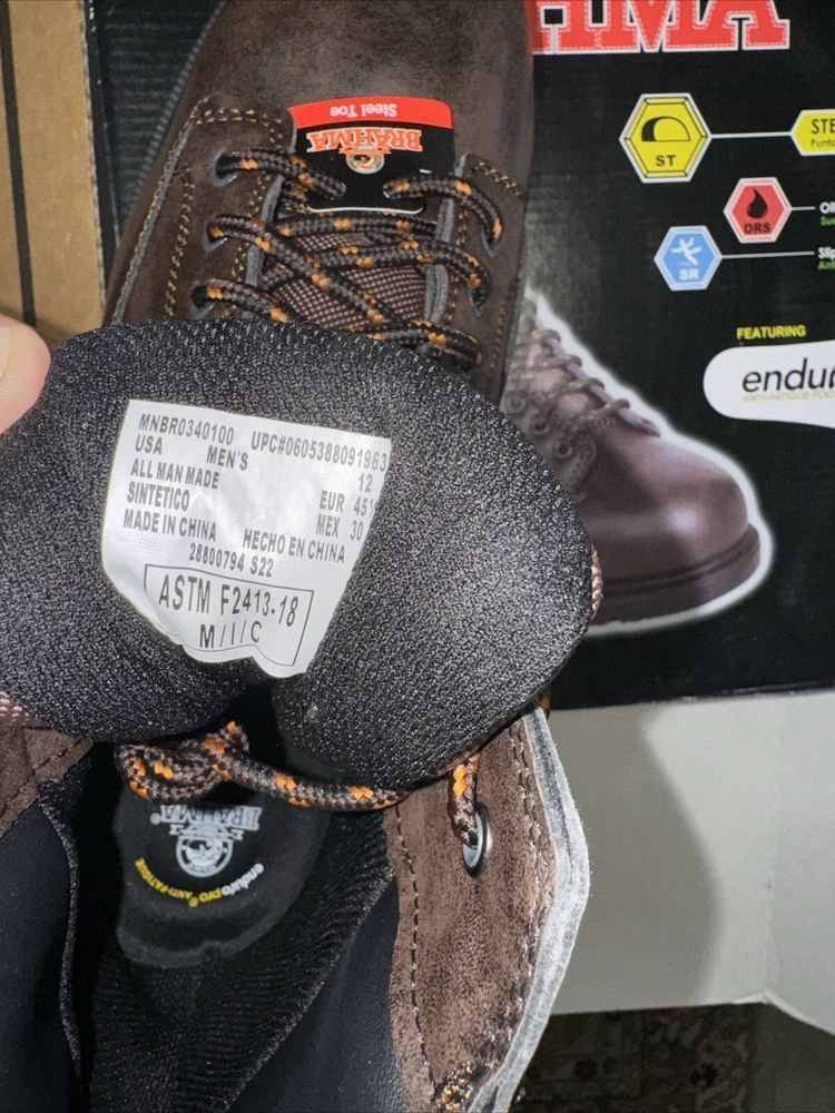 Brahma Boots Men’s Size 12 Steel- Toe Brown Oil/slip Resistant New W/box.